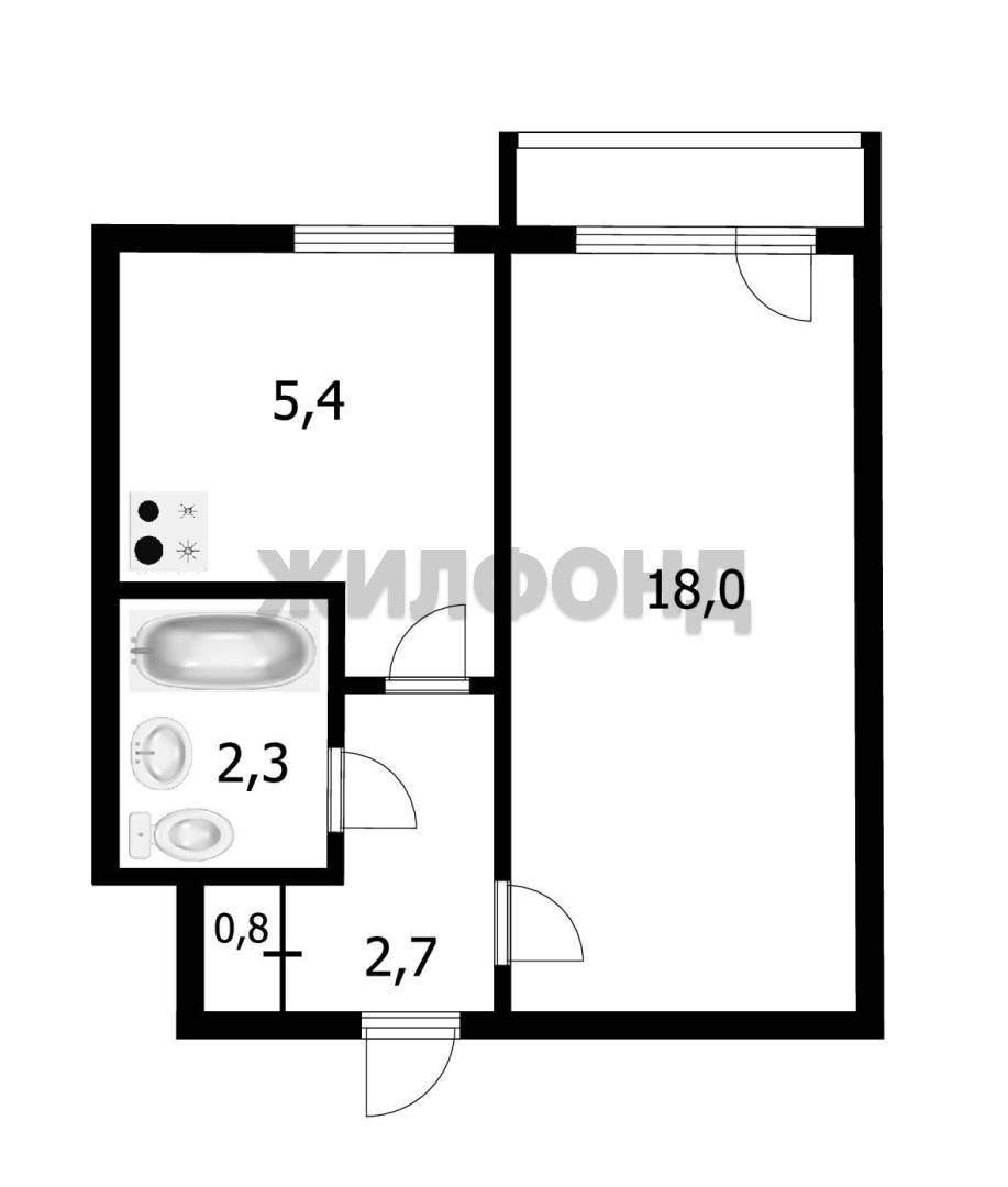 1 комн. квартира по ул. Иванова. Общей площадью: 29.80 кв.м.