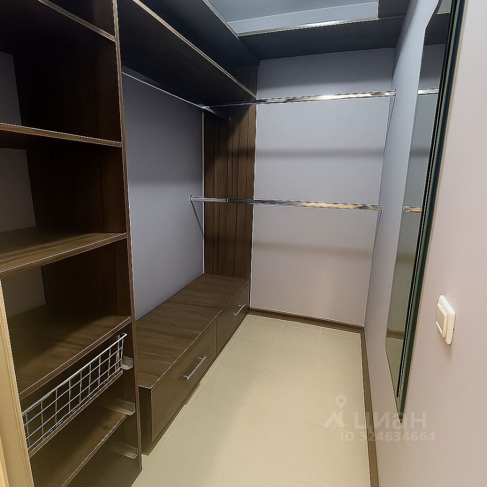 В коридоре — полноценная гардеробная, освобождающая пространство в комнате.