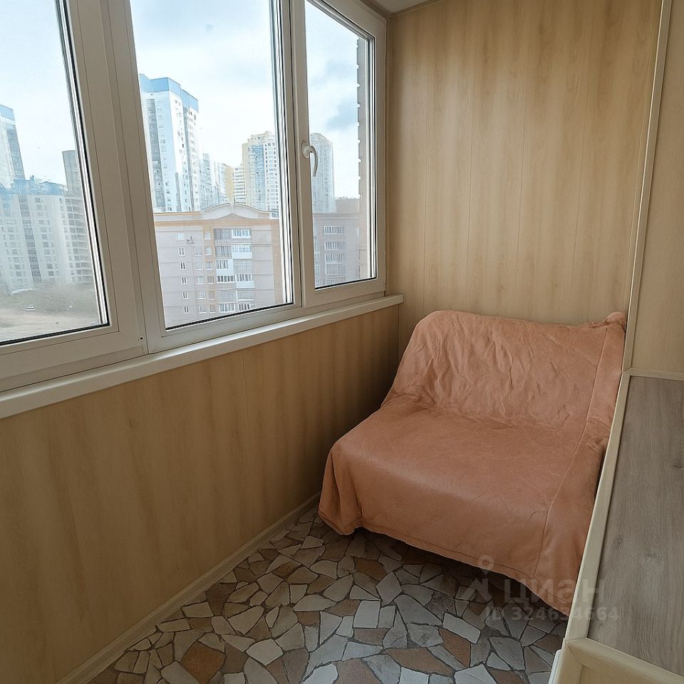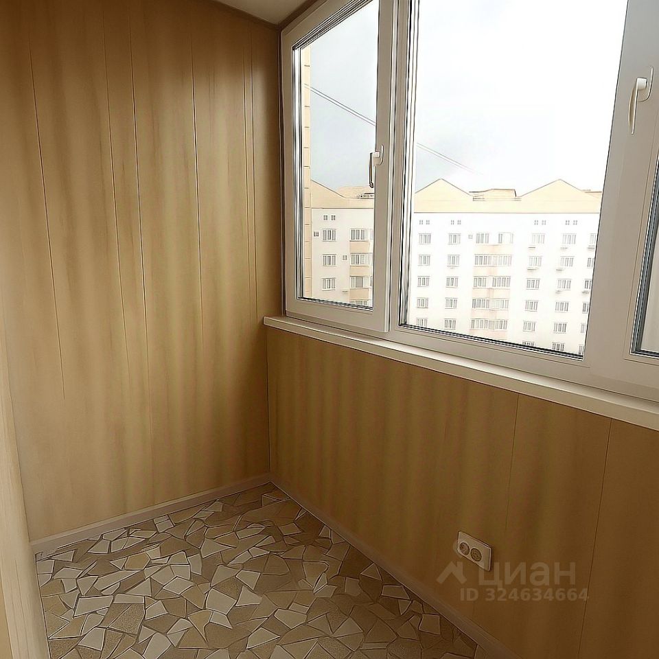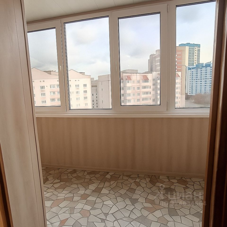 Уютная застеклённая лоджия 5 м² — отлично подойдёт под рабочее место или зону отдыха.
