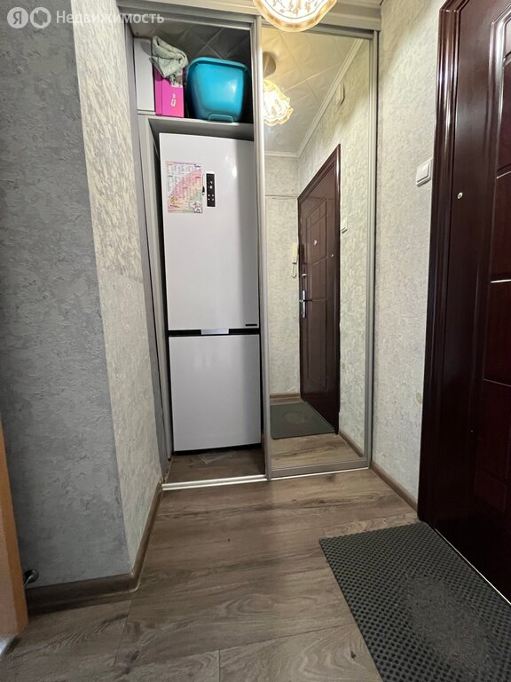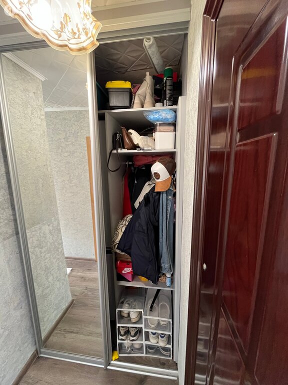 В квартире остаётся кухонный гарнитур, газовая плита и вместительный зеркальный шкаф-купе в коридоре (изготовлен на заказ, глубина позволяет разместить холодильник, чтобы освободить место на кухне и хранить множество вещей), по согласованию можно оставить шкафы в комнате.