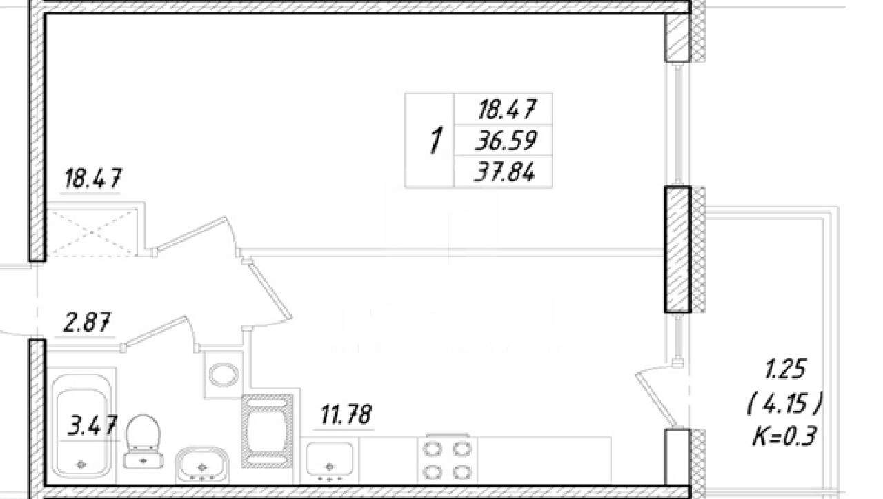 | Площадь общая | 37.84 |