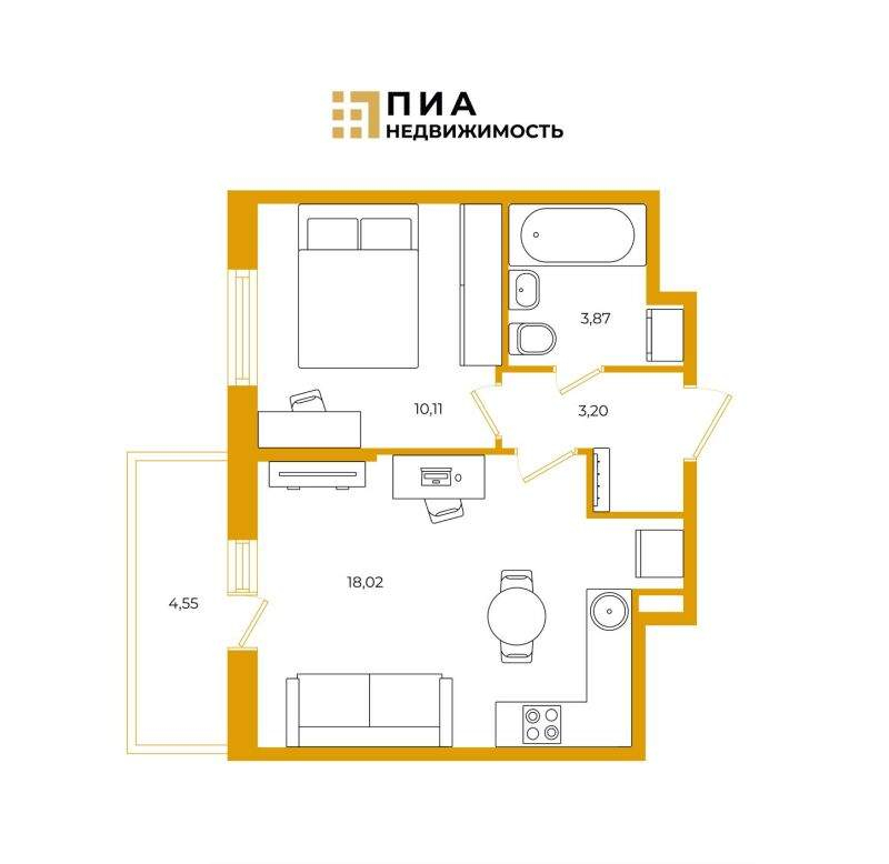 - Общая площадь: 33,7 кв. м.