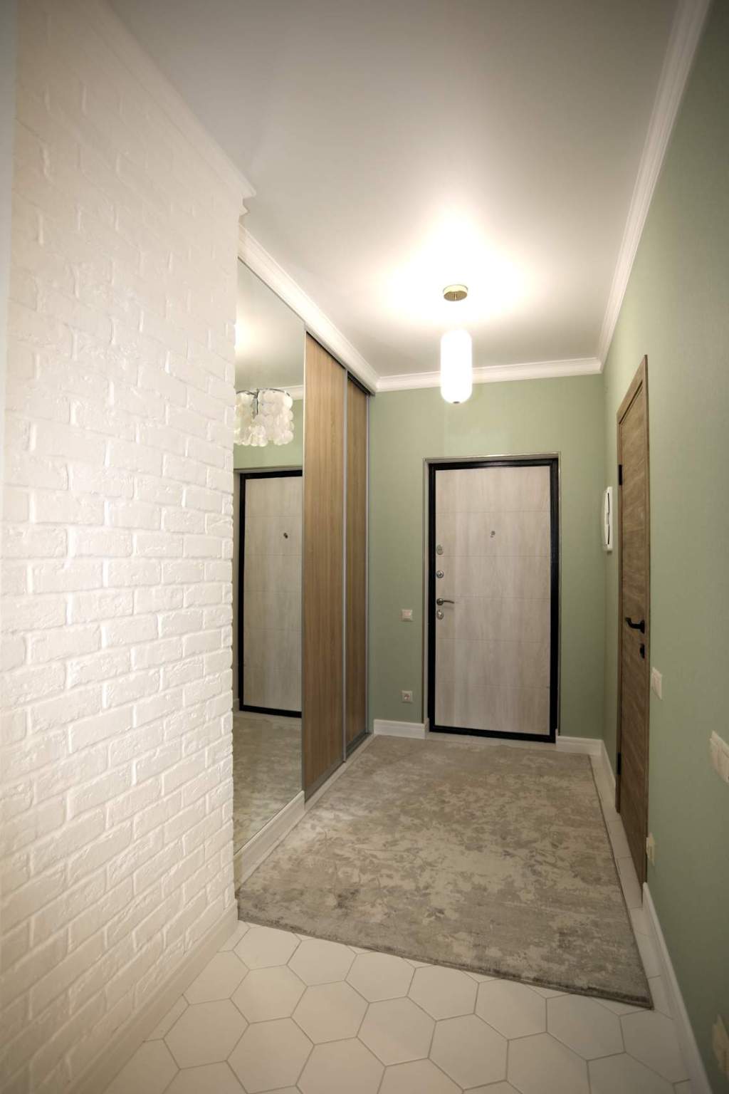 Зоны хранения: вместительный шкаф-купе на входе, просторная гардеробная за зоной кровати.