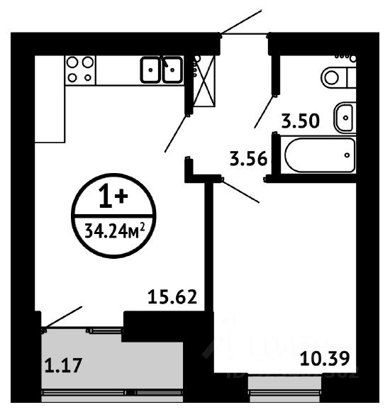 | Площадь общая | 34 |