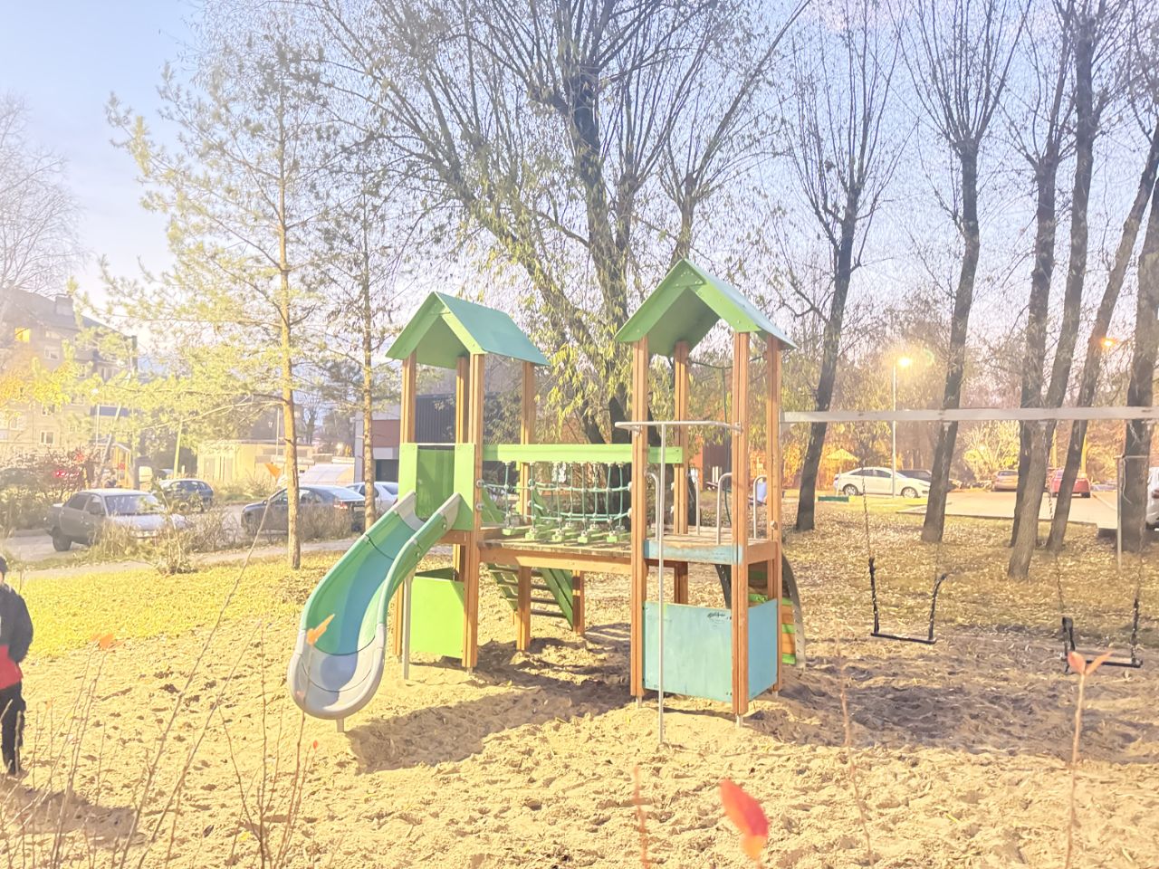 Обновлён , фасад дома, крыша,подъезды, детская площадка, парковочные места для машин.