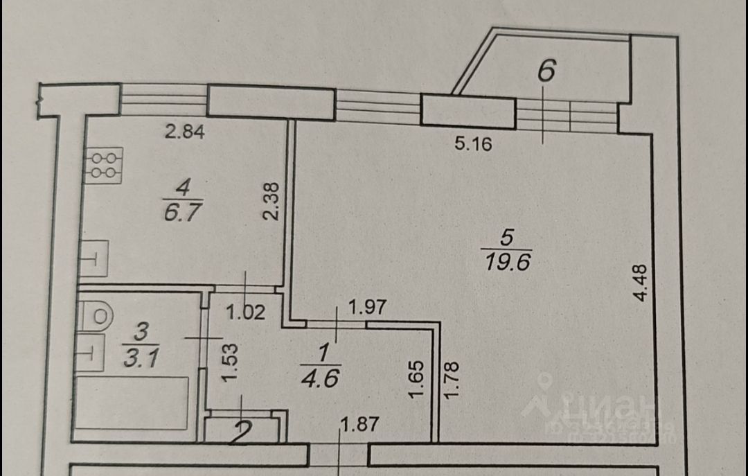 | Площадь жилая | 19.6 |