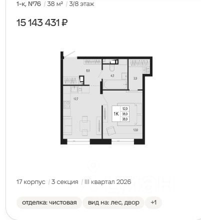 Продажа квартир / 1-комн., 12 000 000