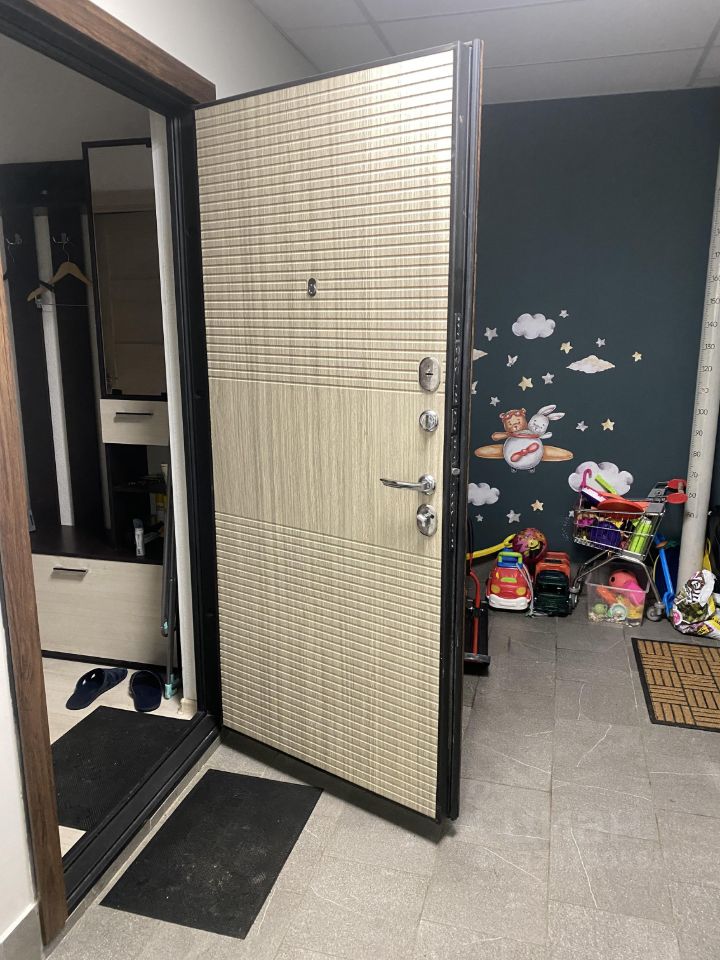 На стенах обои под покраску, на полу ламинат. Двери входная и межкомнатные хорошего качества.