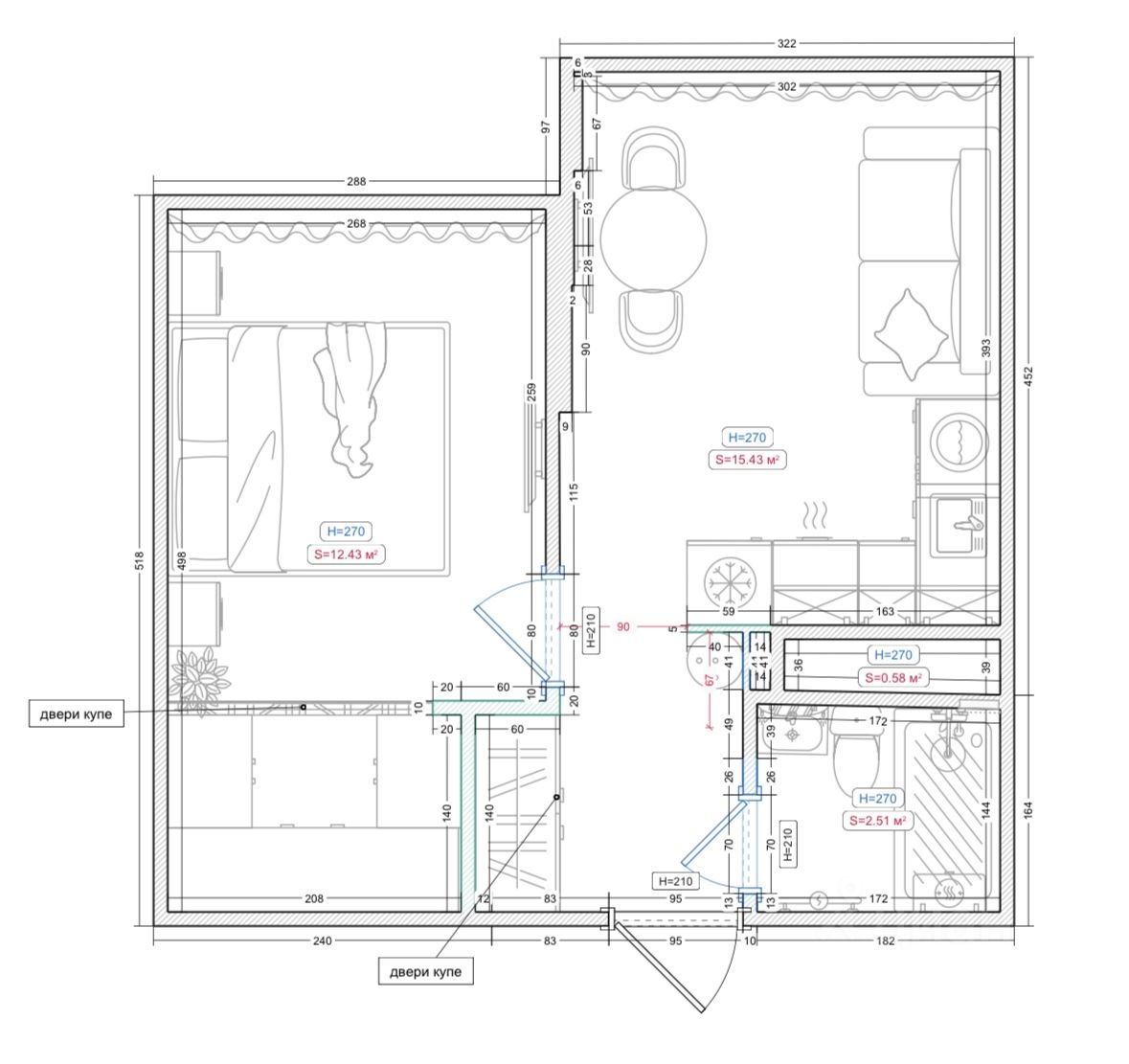 спальня с просторной гардеробной