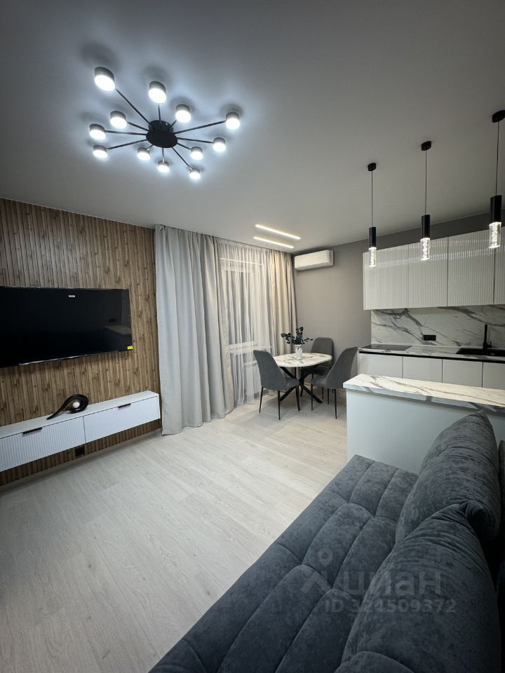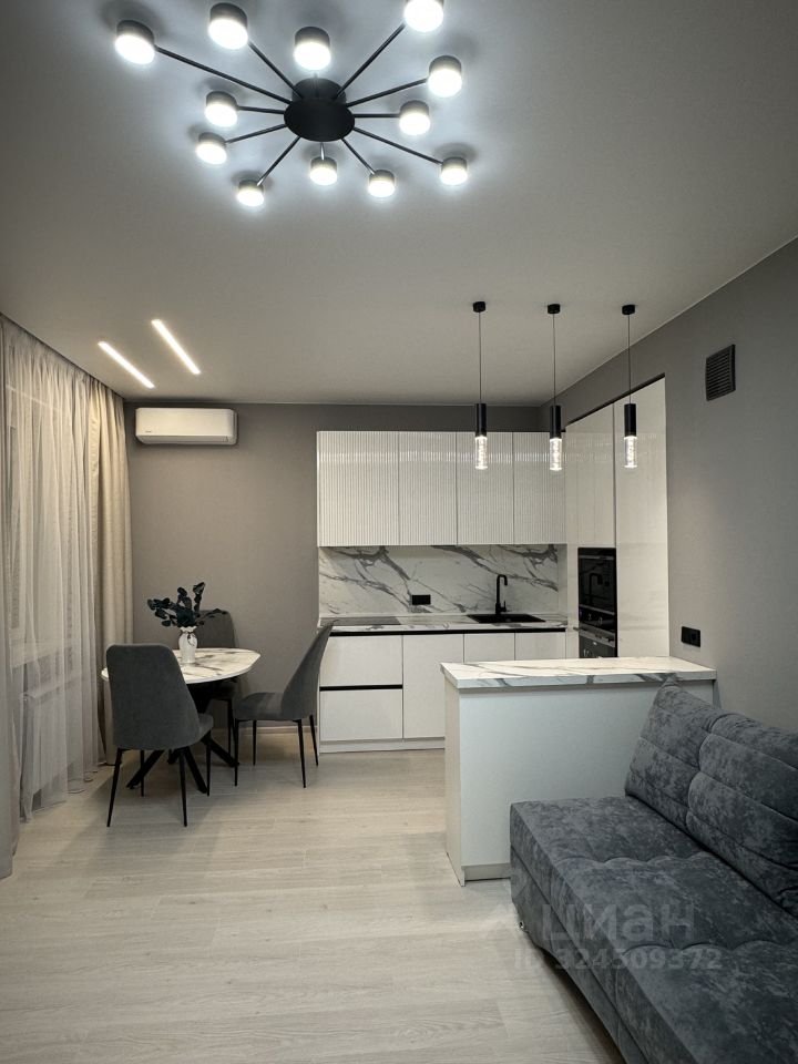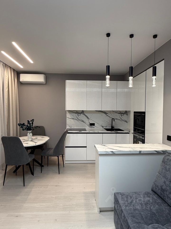 Продается просторная, светлая, уютная однокомнатная квартира (формат 1+) общей площадью -55 кв.м. (площадь квартиры-50,7, балкон-4,3 кв.м). Кухня-гостиная 19 кв.м,.комната-14 кв.м.Пространство квартиры с продуманным функционалом и красивым интерьером. Квартира с мебелью, оборудована для комфортного проживания (остается все, что видите на фото). Кухонный гарнитур оснащен всей необходимой бытовой техникой: варочная панель, вытяжка, духовой шкаф, посудомоечная машина,встроенный холодильник. Санузел совмещен.В ванной и прихожей установлены теплые полы.Потолки по всей квартире натяжные белые матовые. В комнате установлен кондиционер. В квартире большая застекленная лоджия. с двумя выходами кухню и спальную.Дом сдан в 2024 году,материал стен-кирпично-монолитный. В доме 2 пассажирских и 2 грузовых лифта.