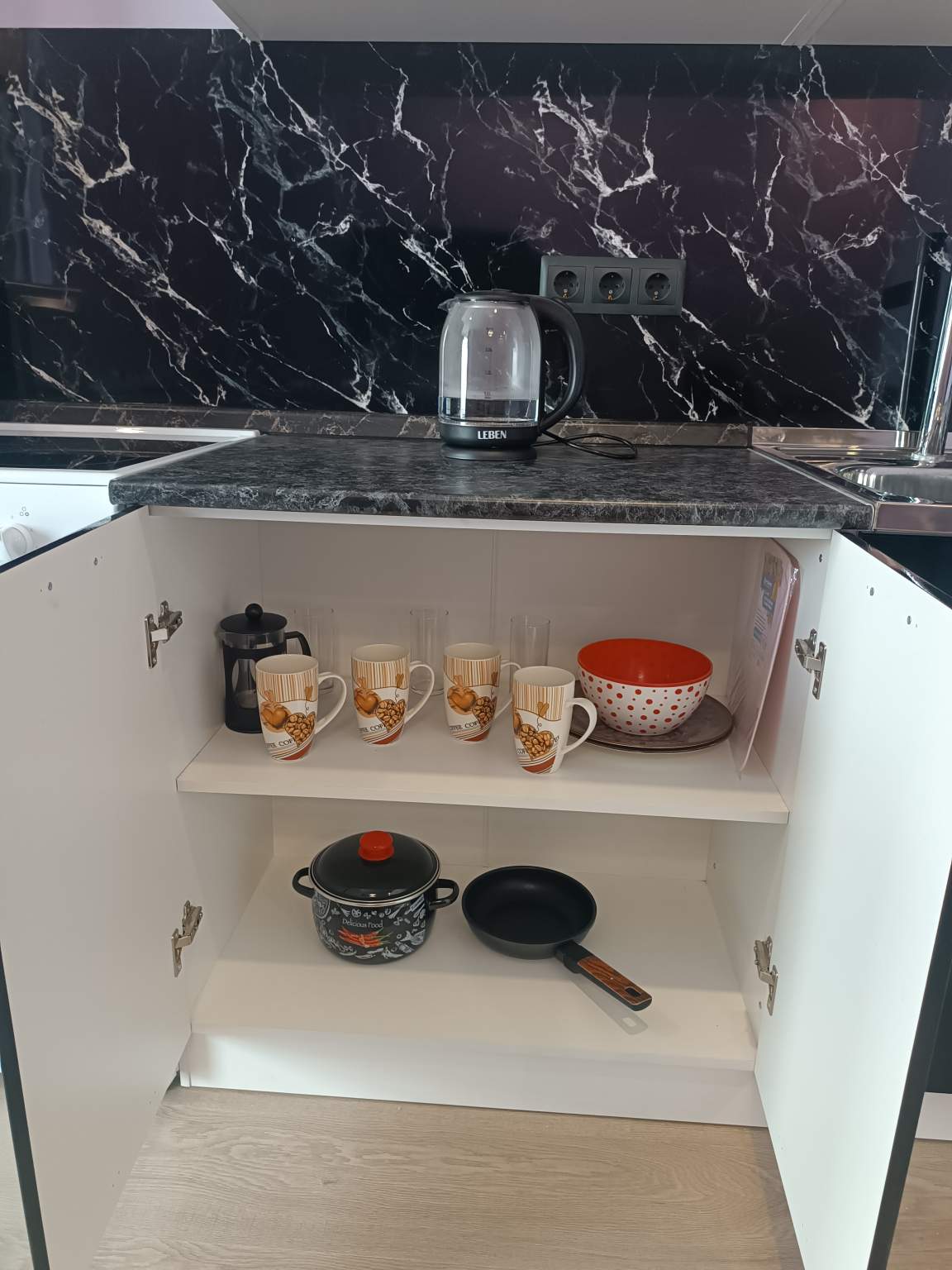 На полу ламинат, балконов - нет, лоджий - нет, окна выходят во двор и на улицу.