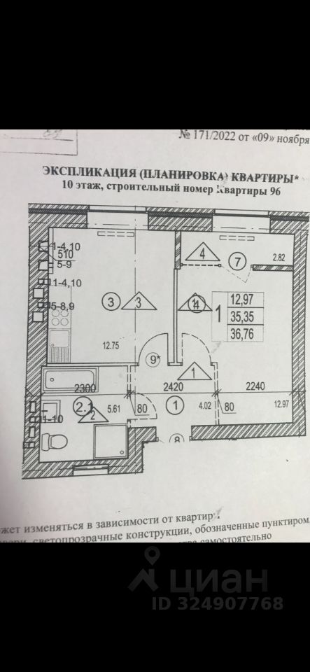 | Площадь общая | 36.76 |