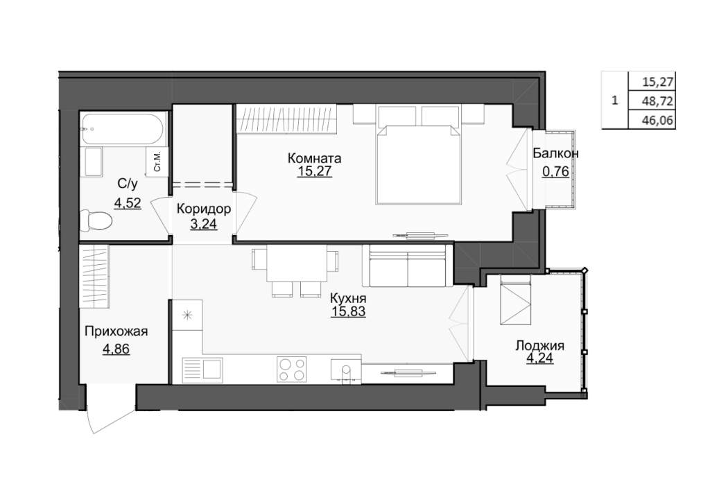 Площадь кухни | 15.83 |