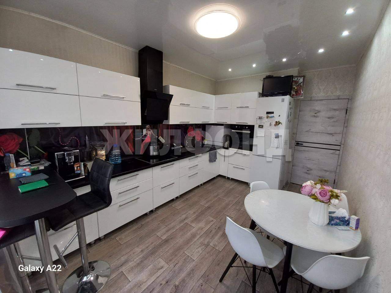 - Большая кухня с барной стойкой (съёмной) , гарнитуром (4,2 м) и техникой.