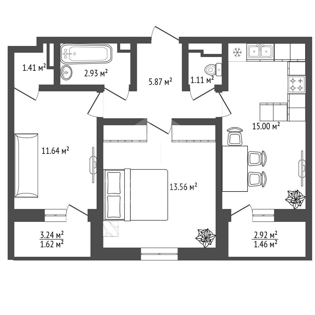 | Категория | 2-комн. |