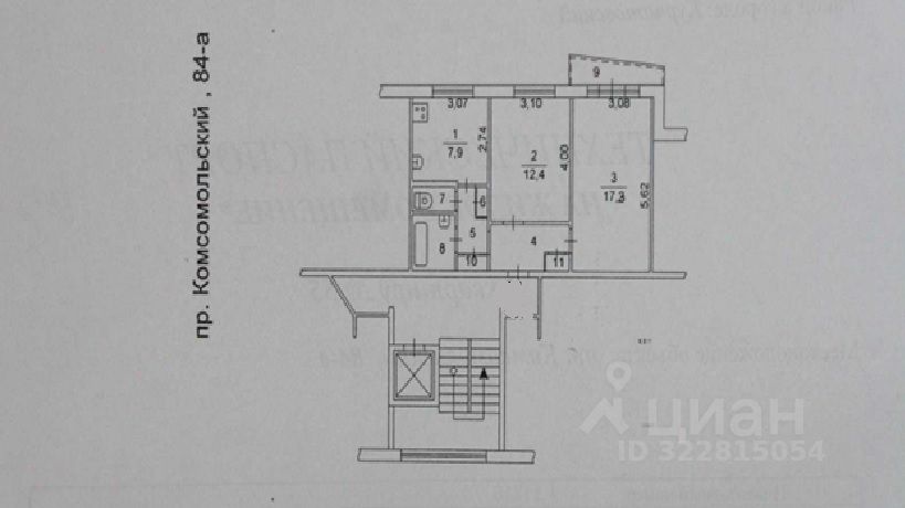Просторные комнаты: 17,3 и 12,4 кв.м