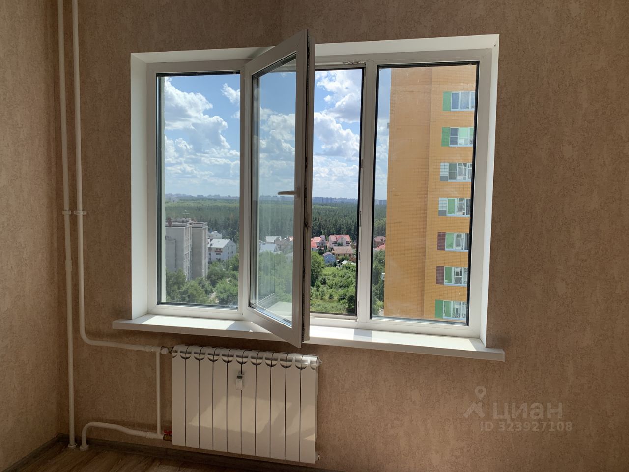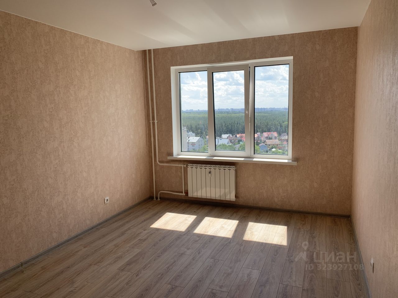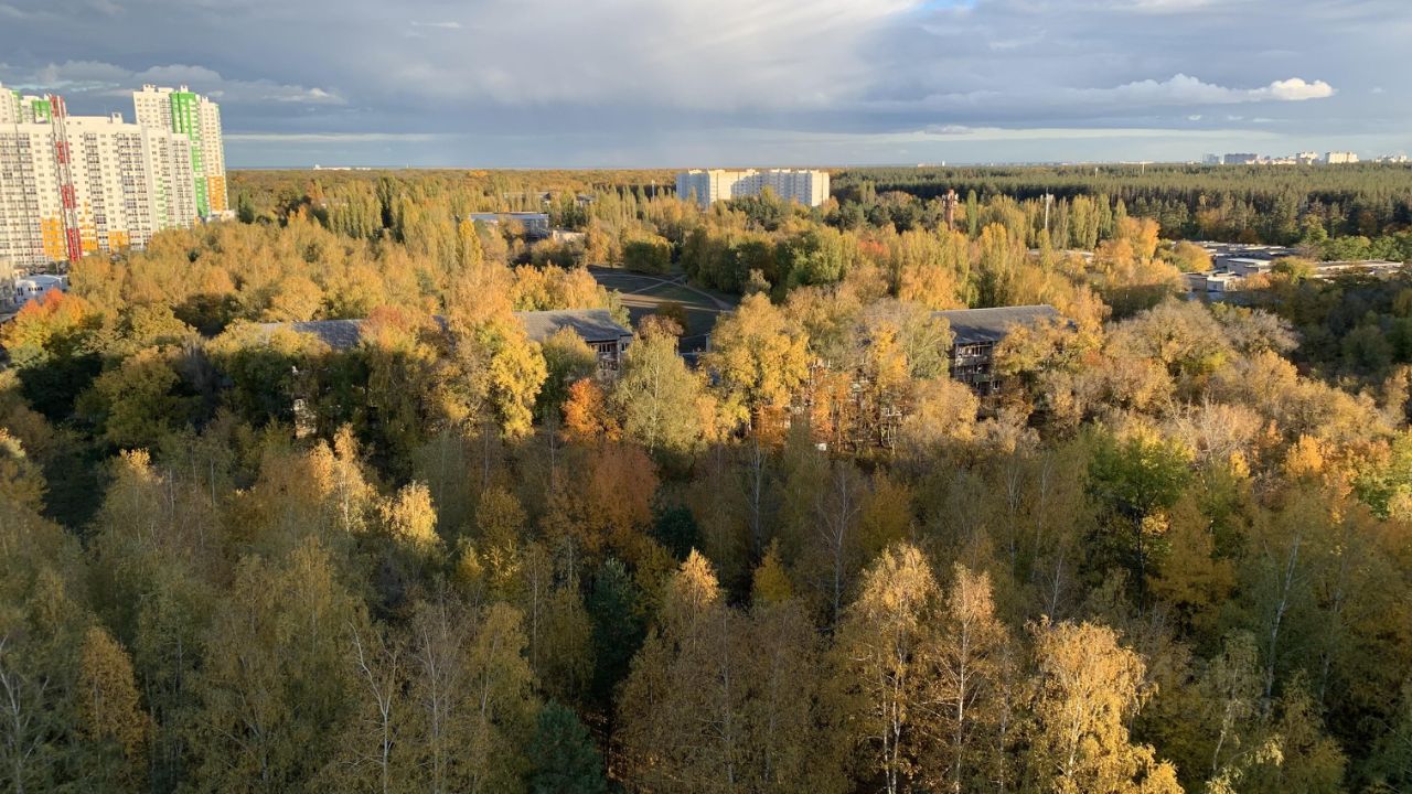 Окна спален на одну сторону, солнце в первой половине дня. Благодаря высокому этажу открывается красивый вид на большой лес, расположенный рядом. Экологически чистая территория в черте города.