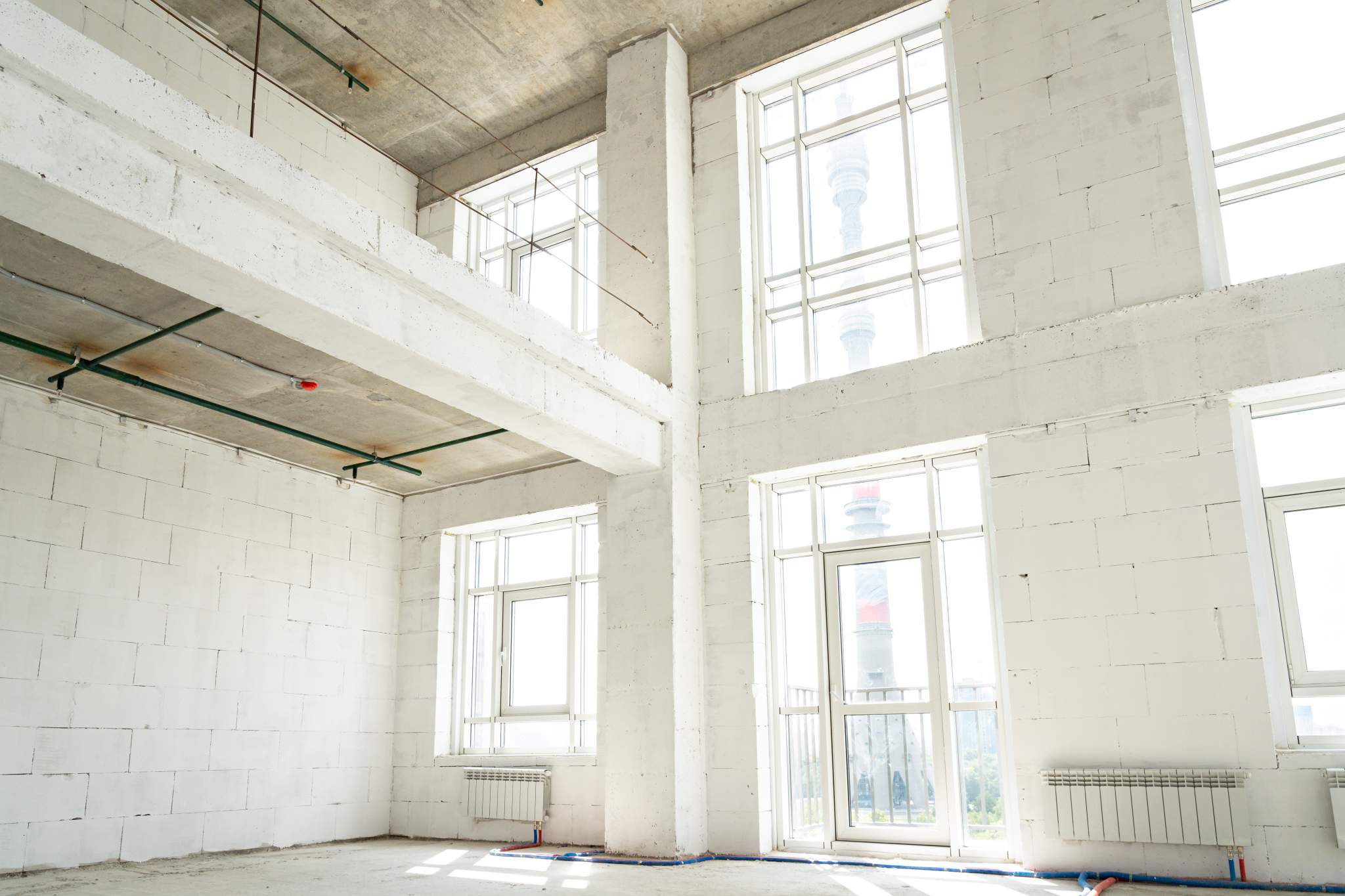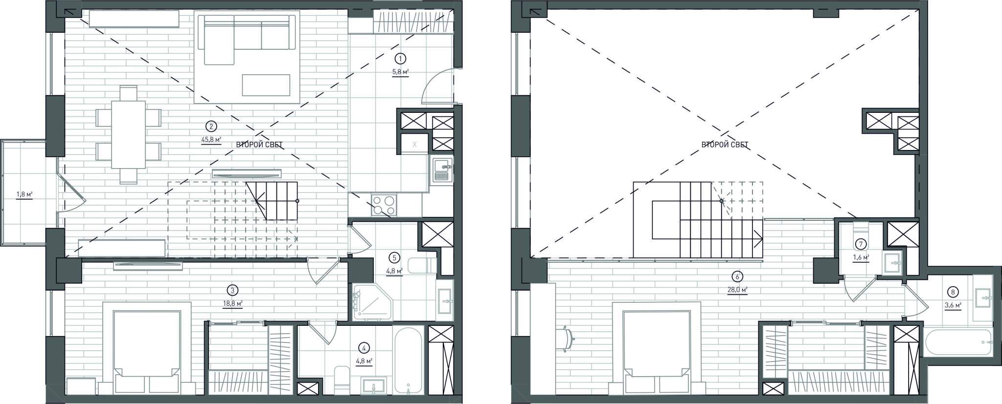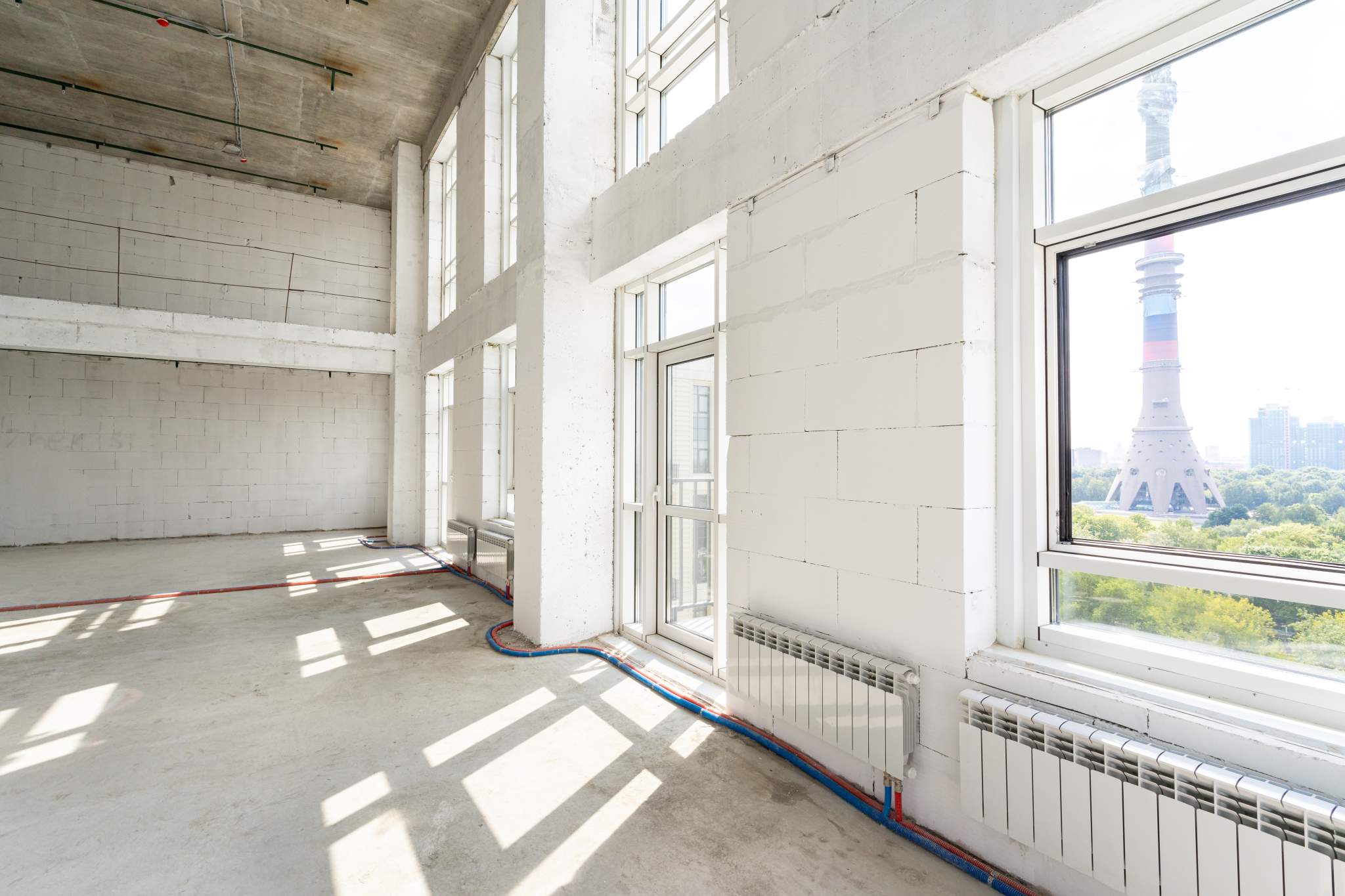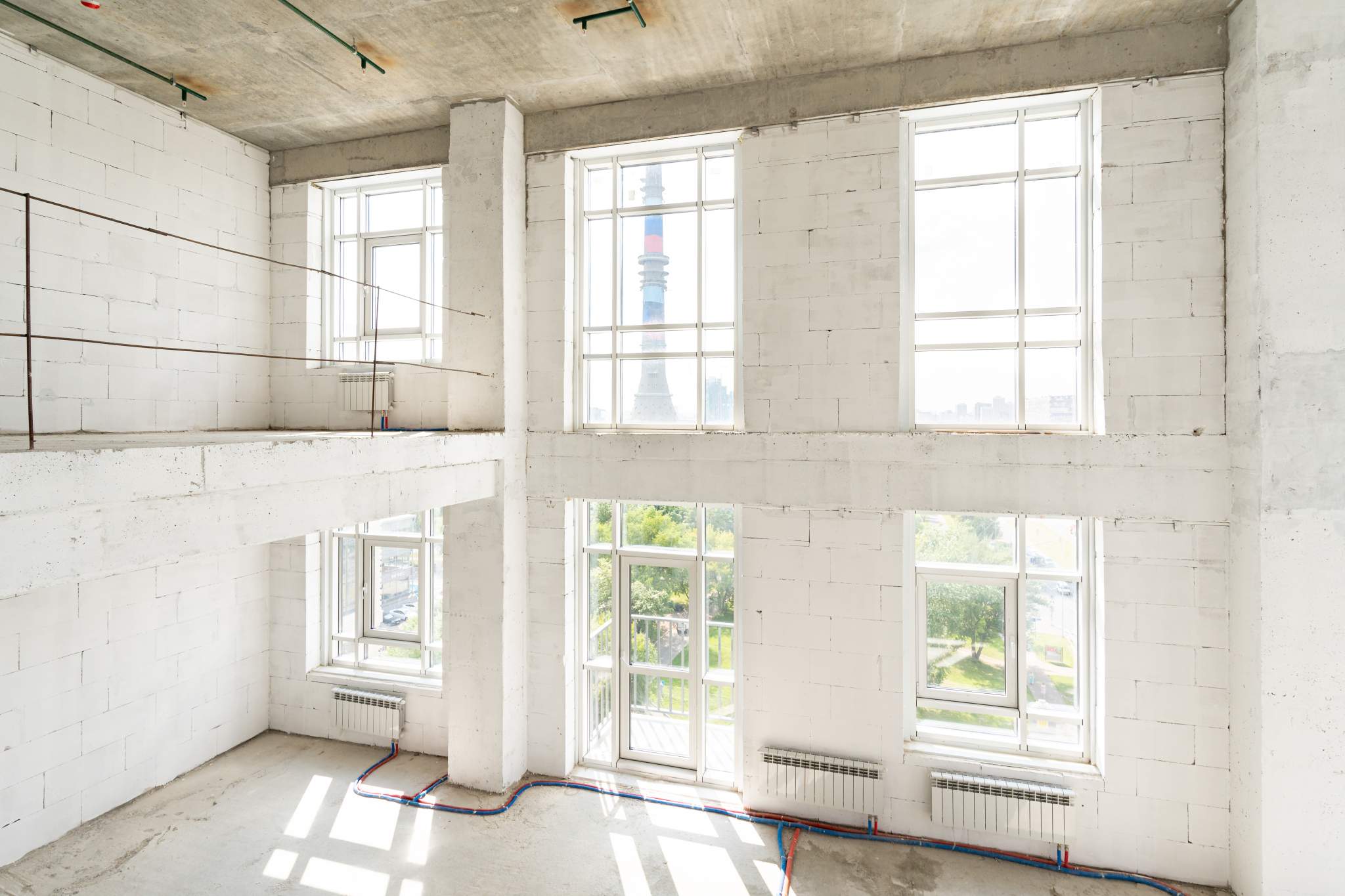 Двухуровневые апартаменты со свободной планировкой. Лот без отделки. Вид из окон на парк и на Останкинскую телебашню (см. фото).
