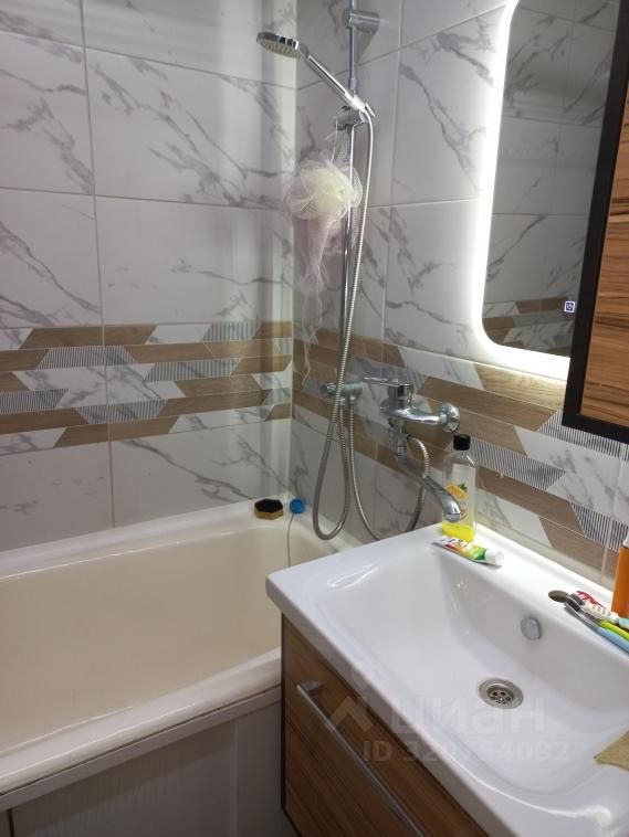 Натяжной потолок, в ванной комнате и сан. узле стены и пол выложены современной облицовочной плиткой.