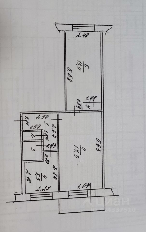 | Площадь общая | 44.5 |