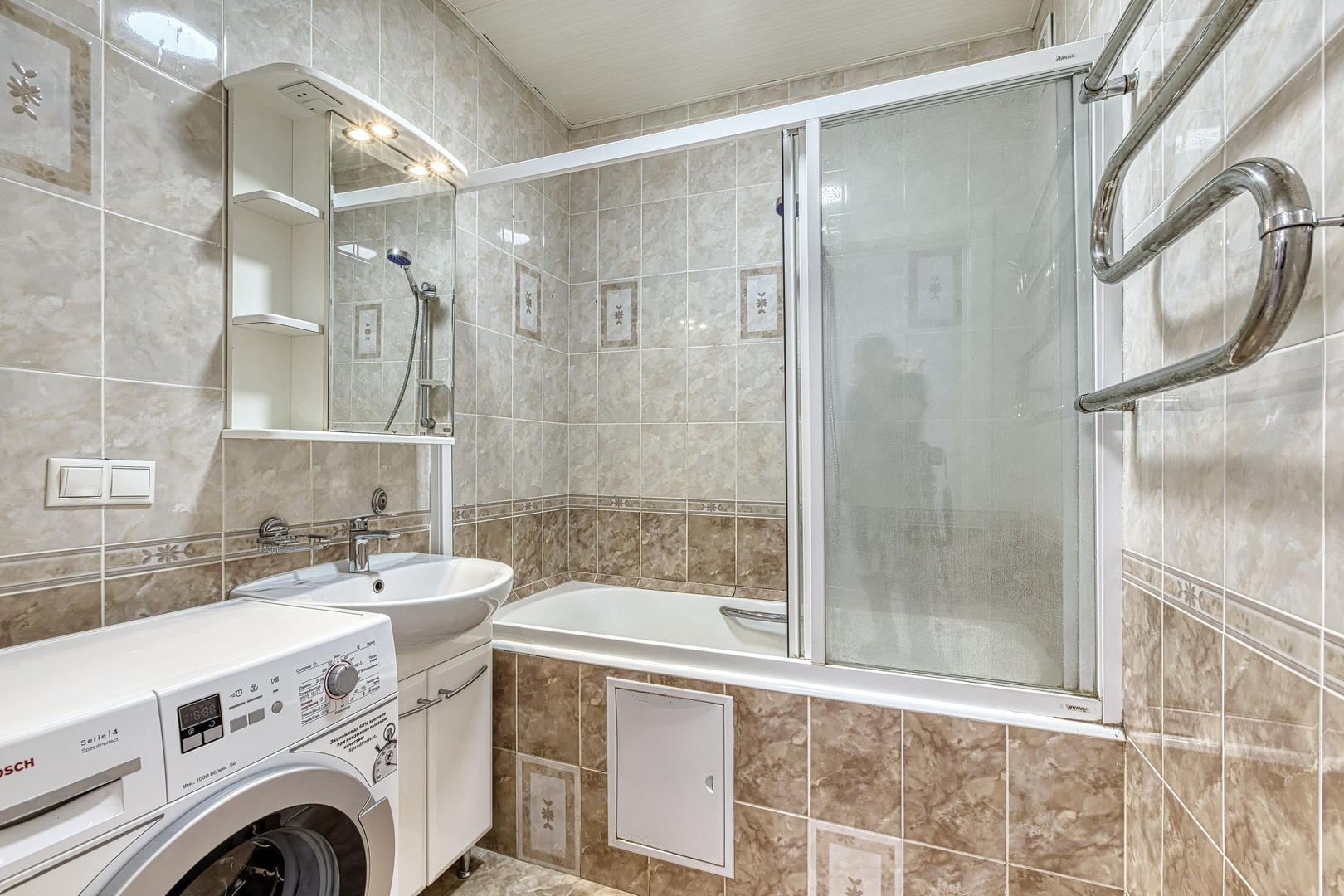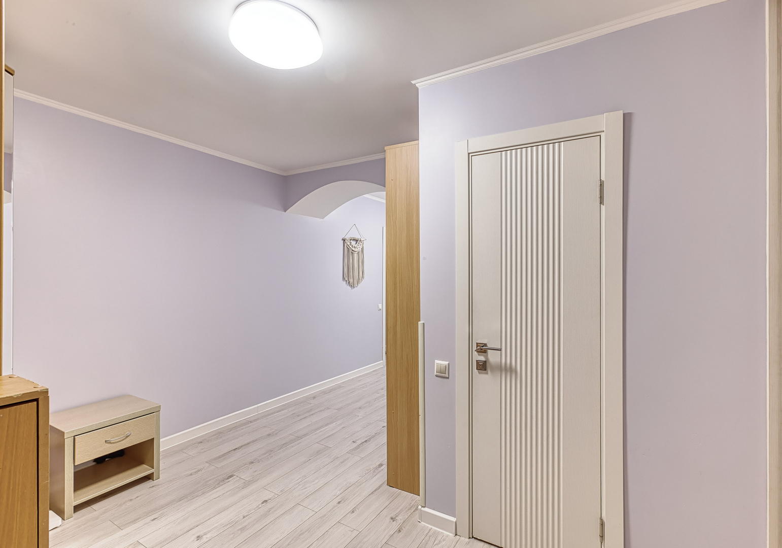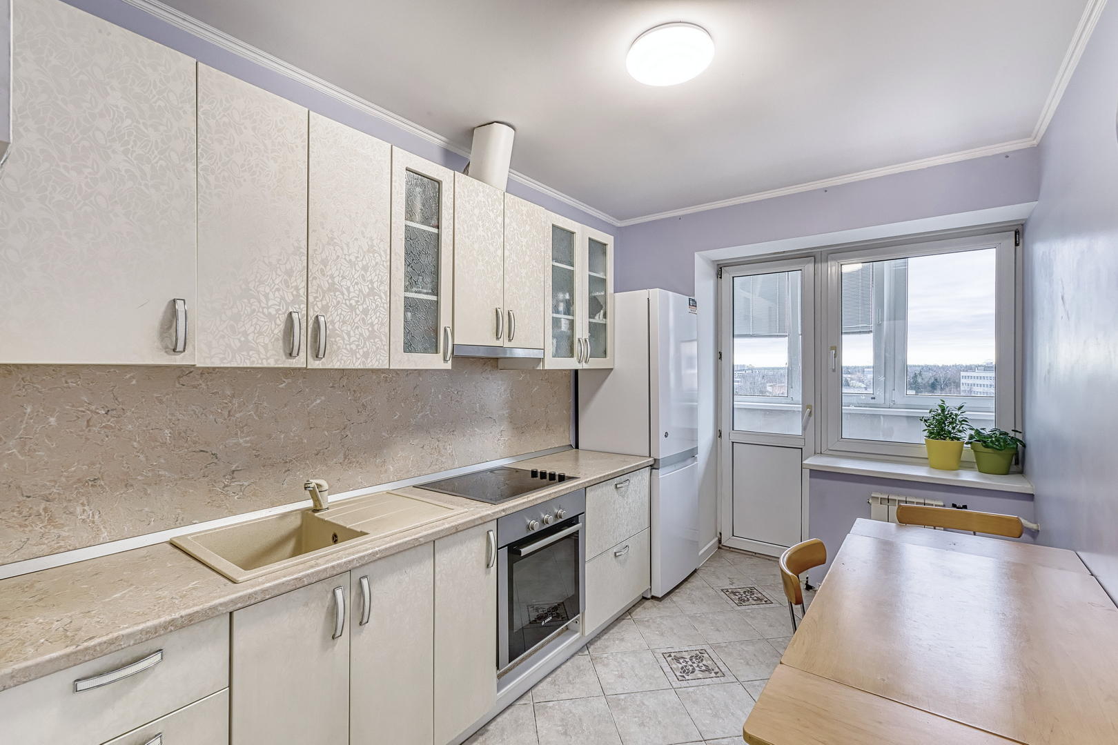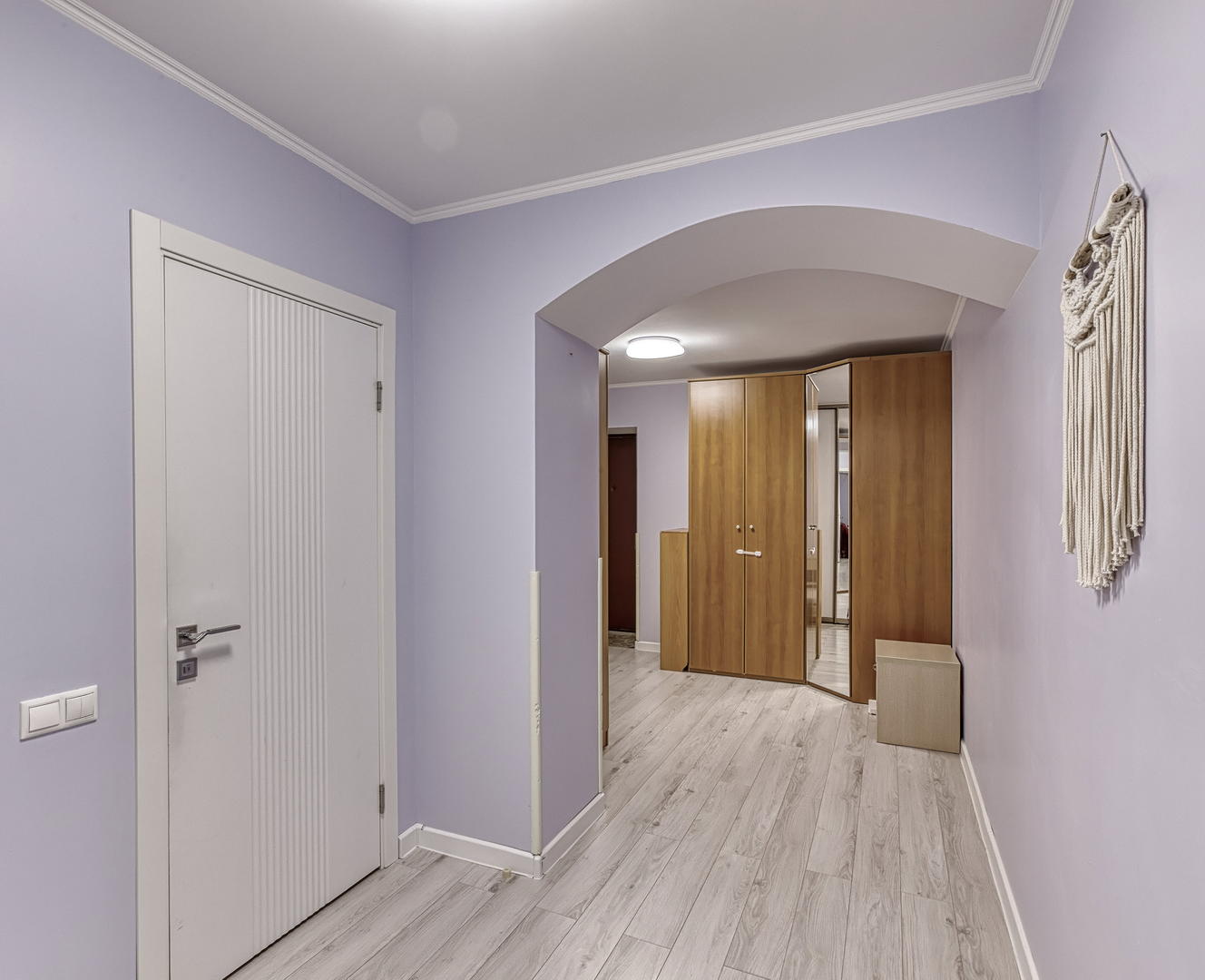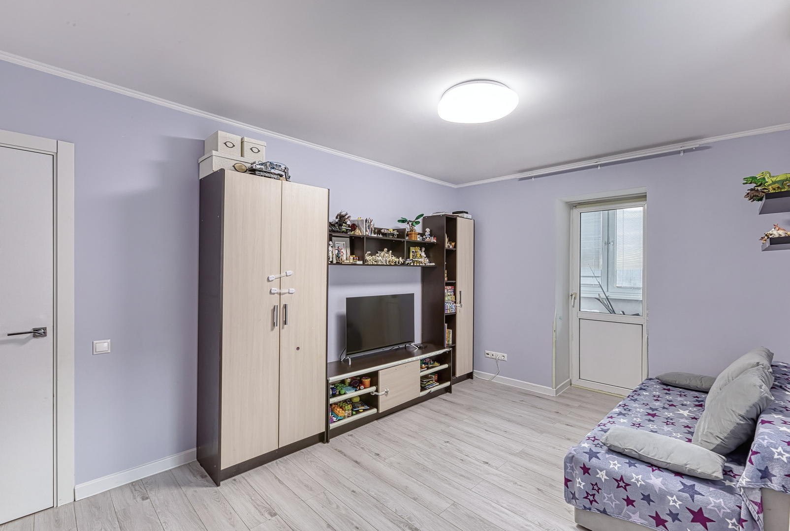 Квартира расположена на 9 этаже, две небольшие спальни, большая кухня и просторный хол, оборудованный шкафами для хранения. Кухонный гарнитур, шкафы в прихожей - остаются. Квартира в хорошем состоянии, косметический ремонт был сделан 2 года назад.