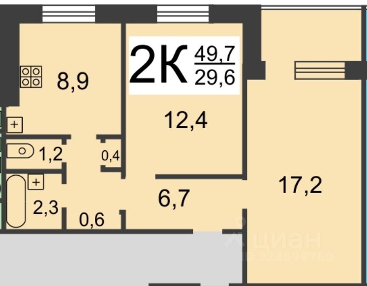 | Площадь жилая | 29.6 |
