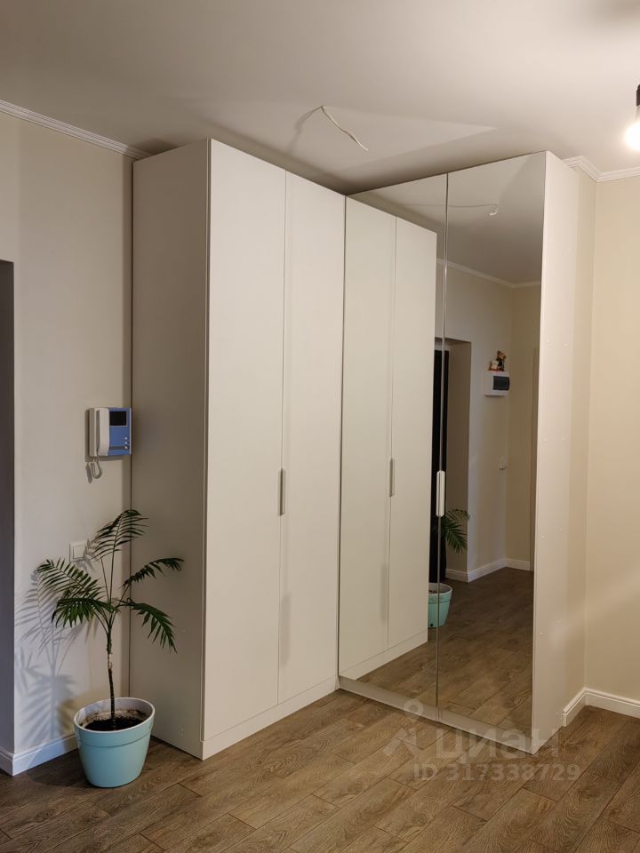 В квартире остается встроенная кухня с техникой, стол, стулья, полностью укомплектованная спальня и встроенный шкаф в прихожей с большими зеркалами, установлен кондиционер.