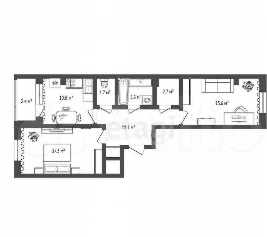 | Категория | 2-комн. |
