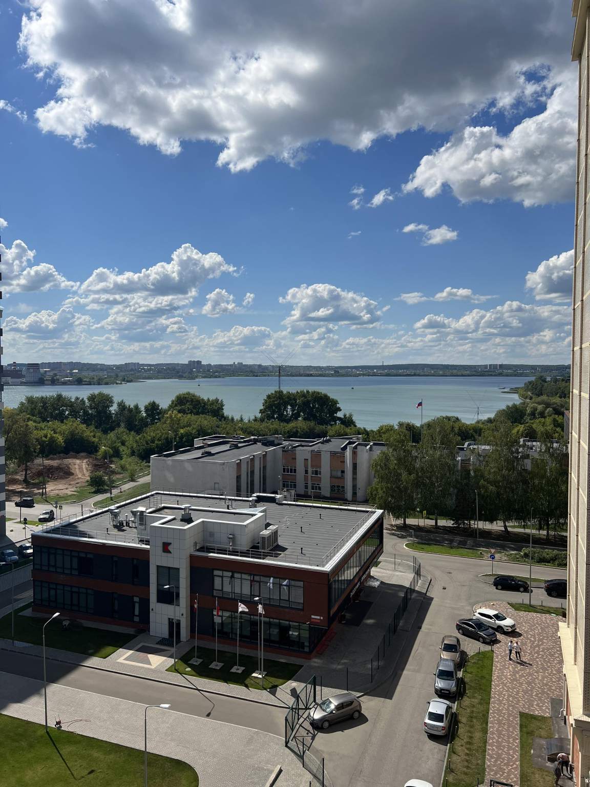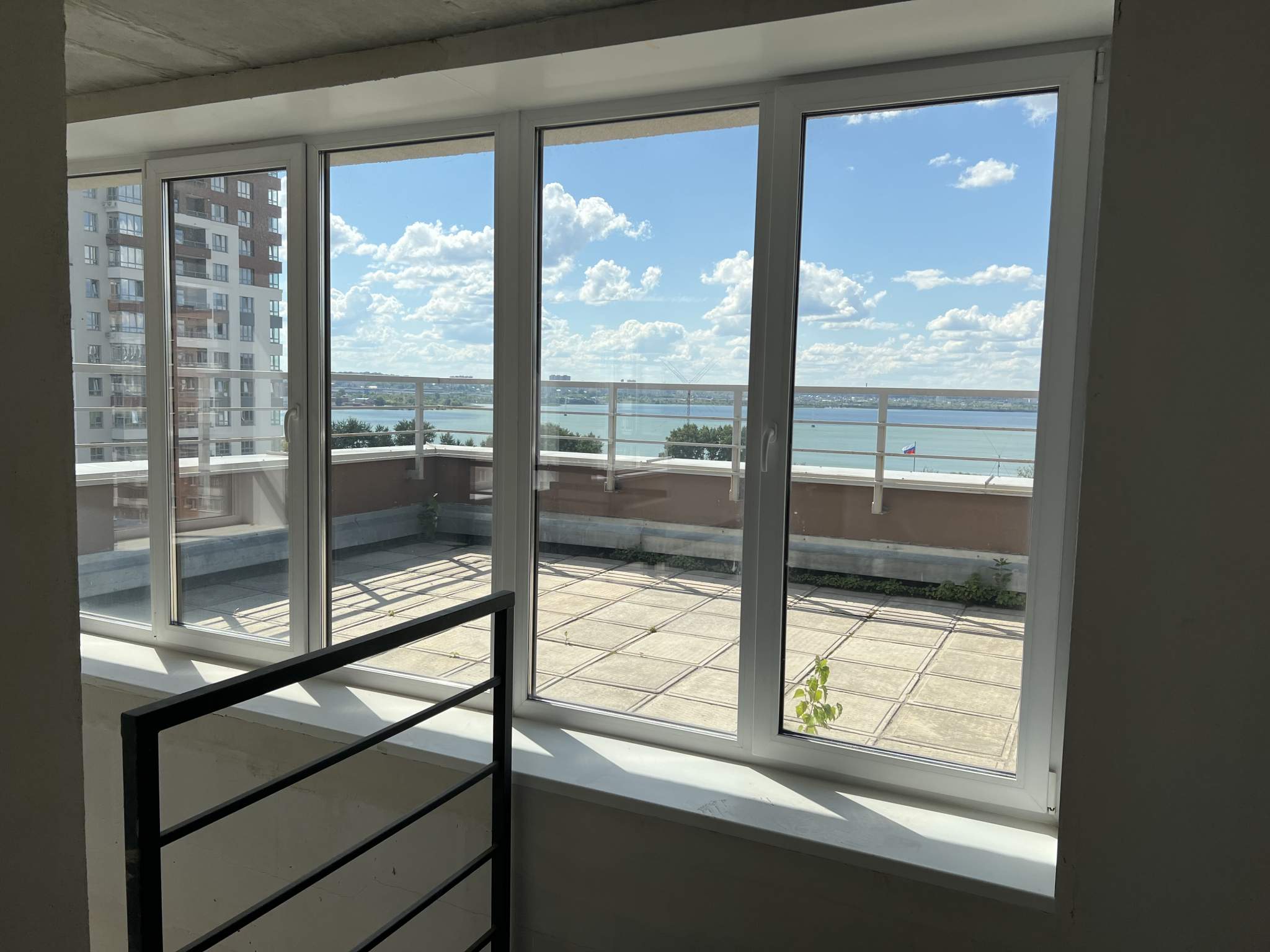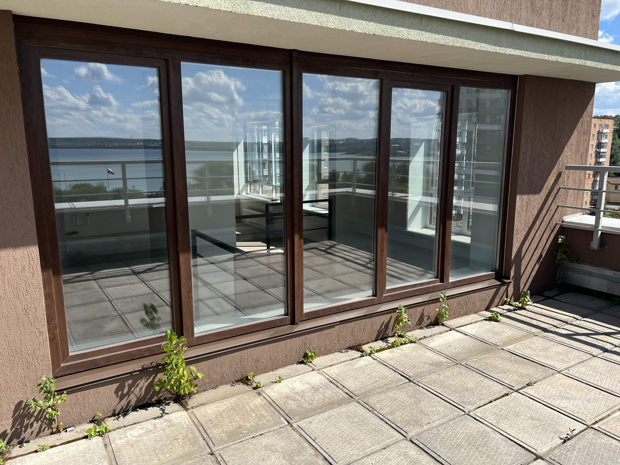 Жилая площадь 45 кв. м, кухня 27 кв. м. Раздельных санузлов - 2, совмещенных санузлов - 1, балконов - 1, окна выходят на пруд. Большая терраса с видом на пруд.