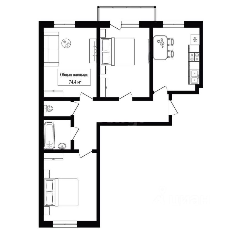 | Площадь общая | 74.4 |