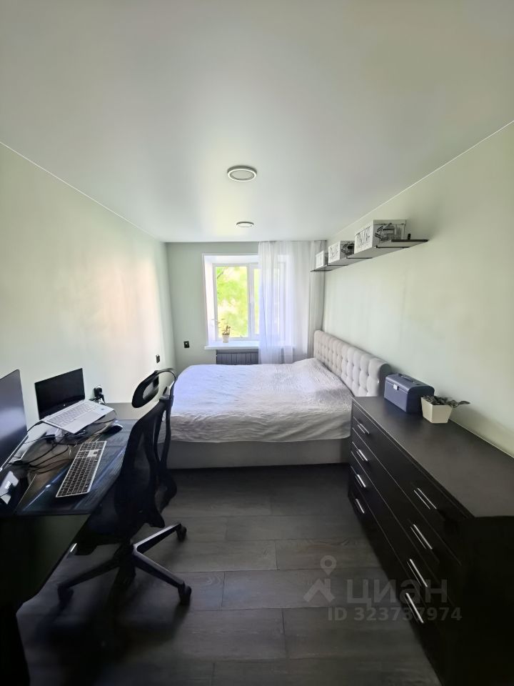 Планировка: 3 комнаты. Гостиная совмещена с кухней, что создает ощущение простора. Есть застекленный балкон с практичными шкафами для хранения.