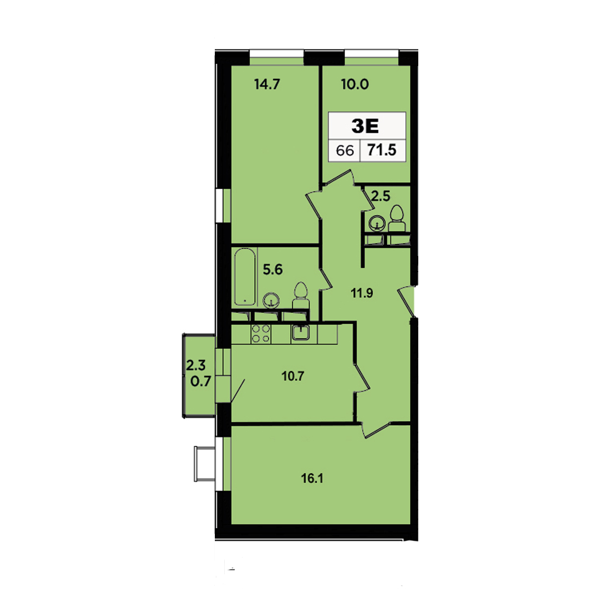 | Площадь общая | 71.5 |