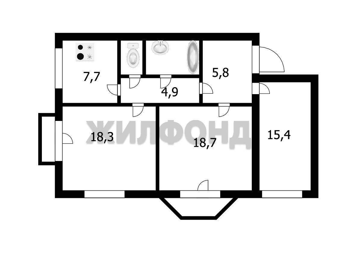 Обратите внимание-три изолированные комнаты-18,3 18,7 и 15,4 кв.м.