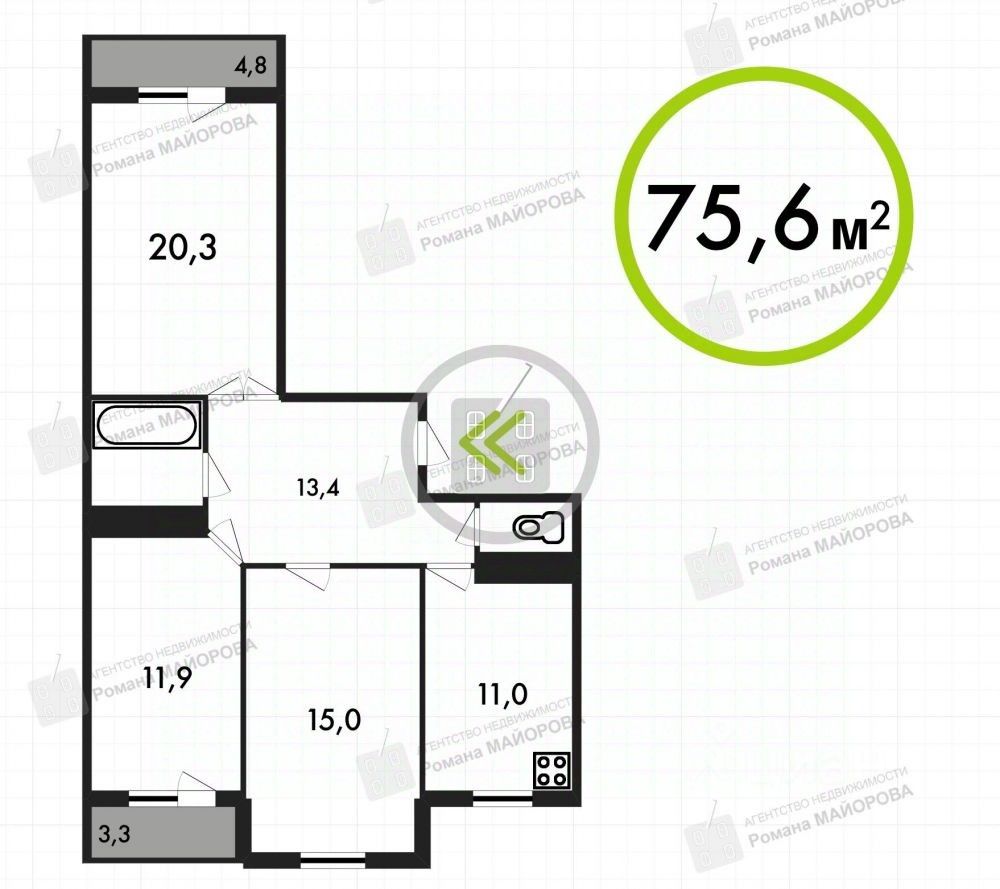 | Площадь общая | 75.6 |