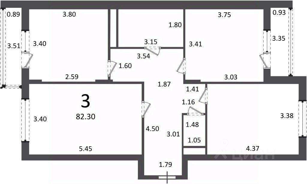 | Площадь общая | 82.3 |