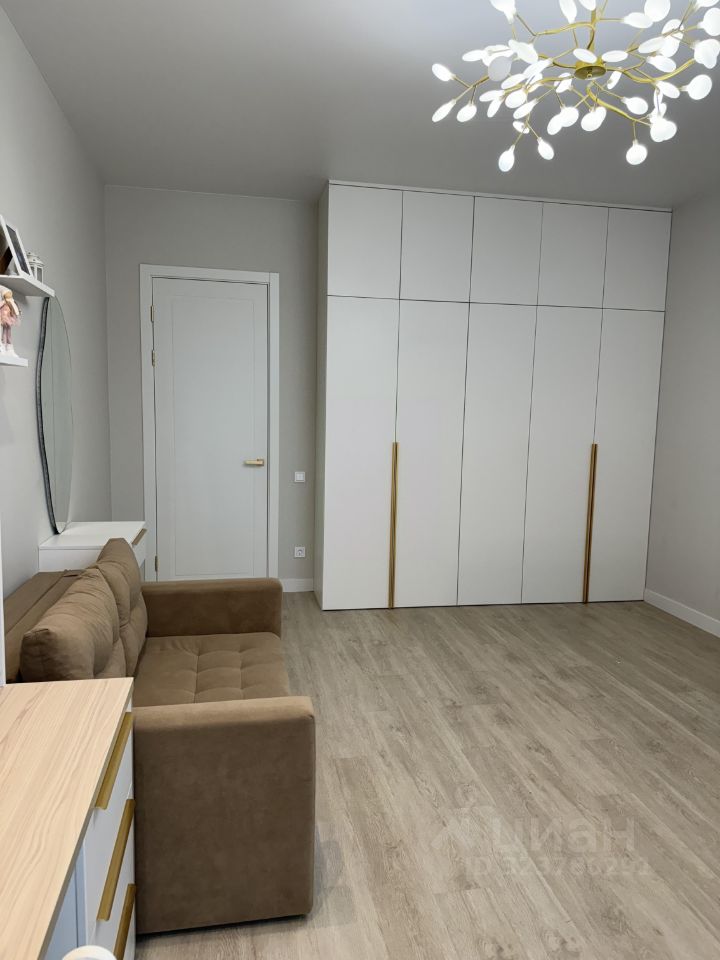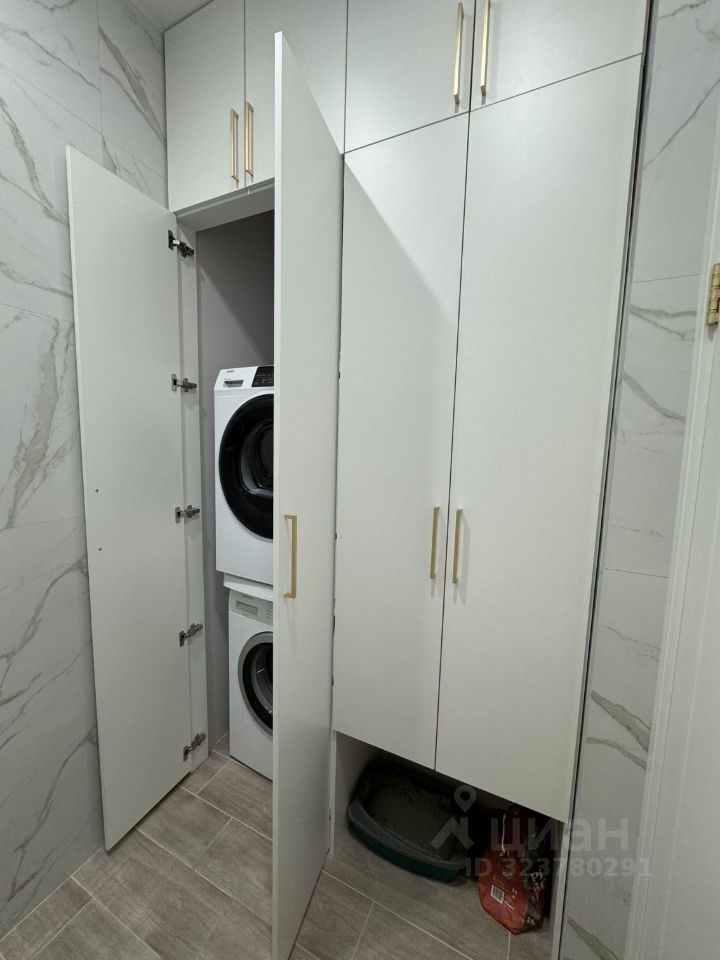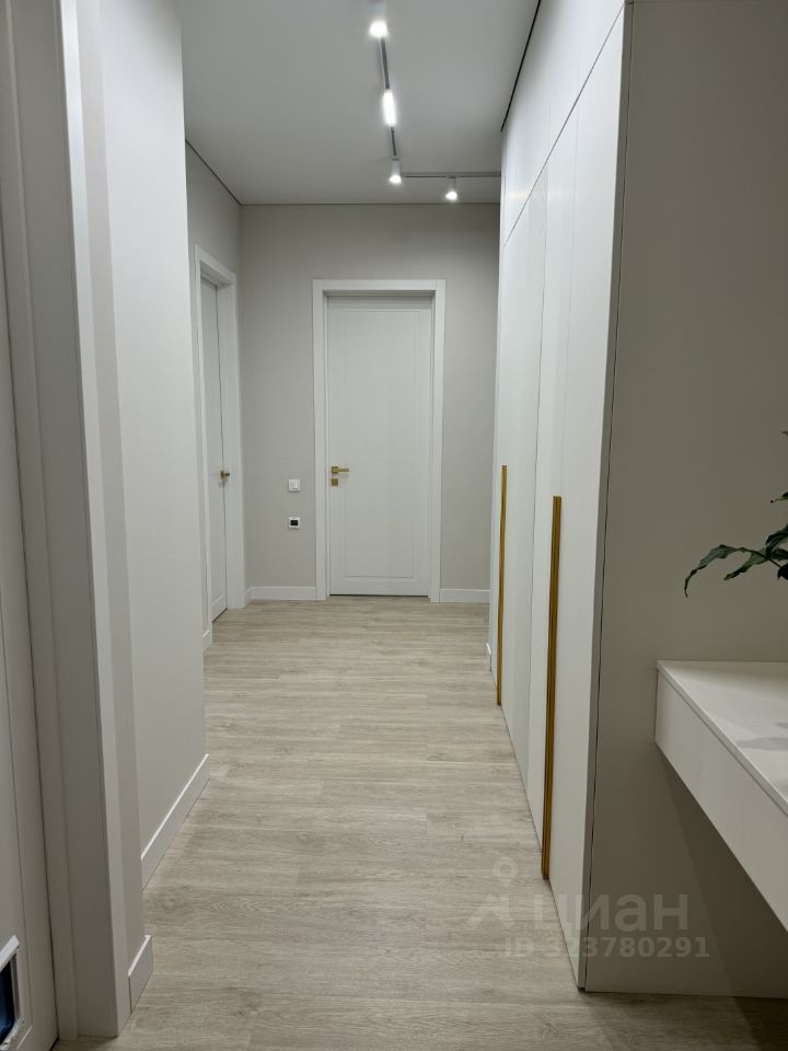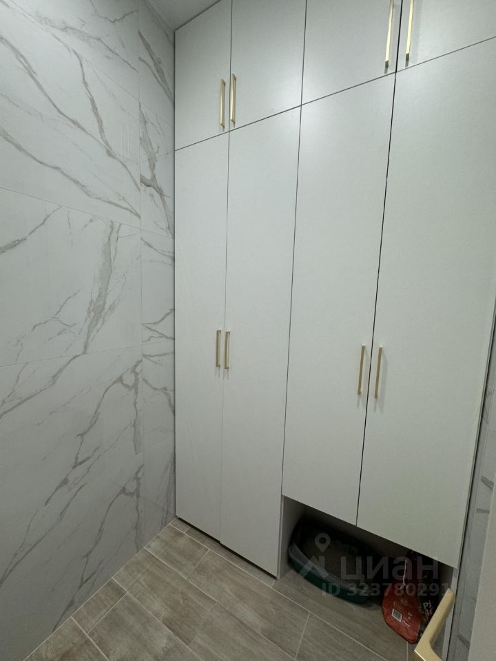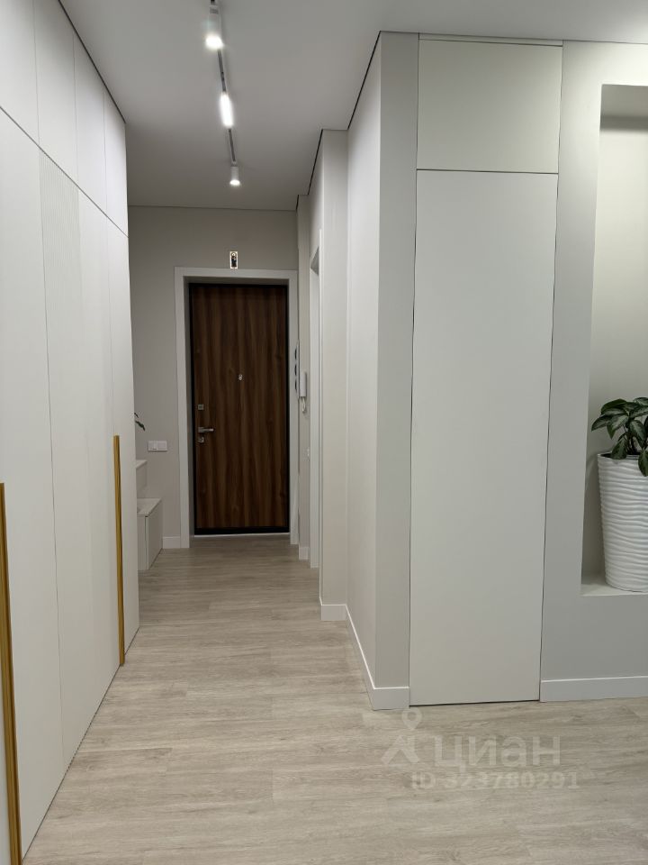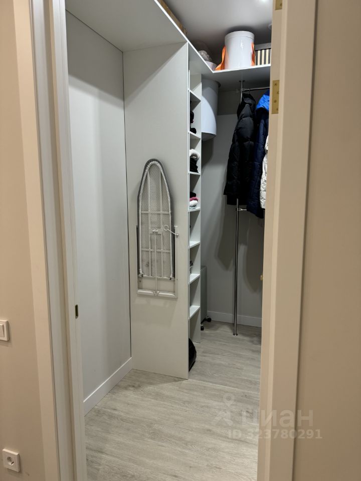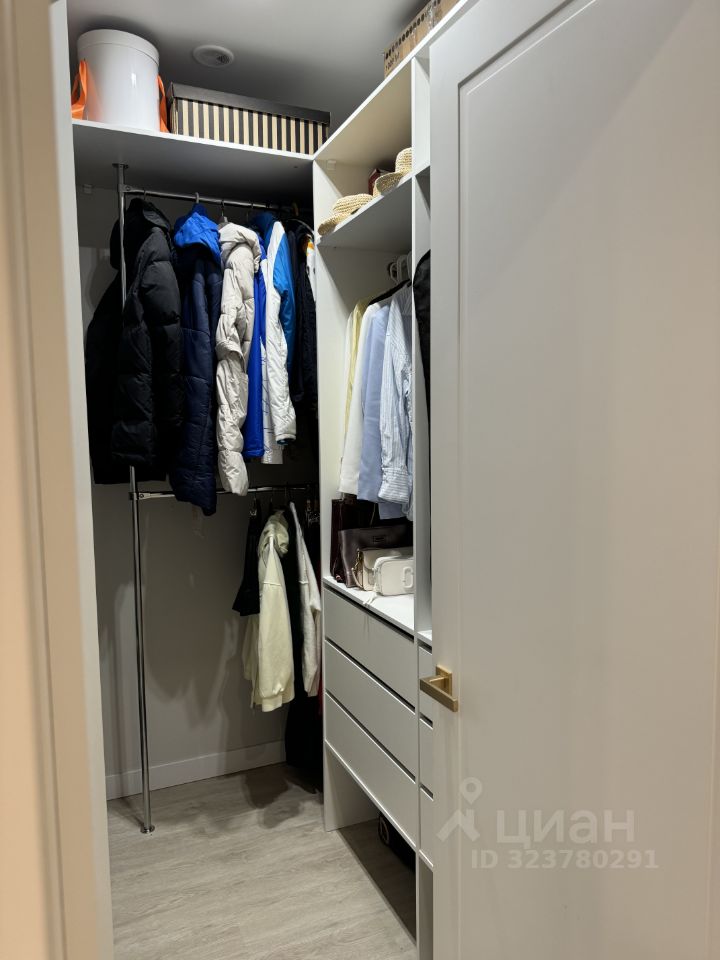 В квартире имеется гардеробная с продуманной системой хранения.