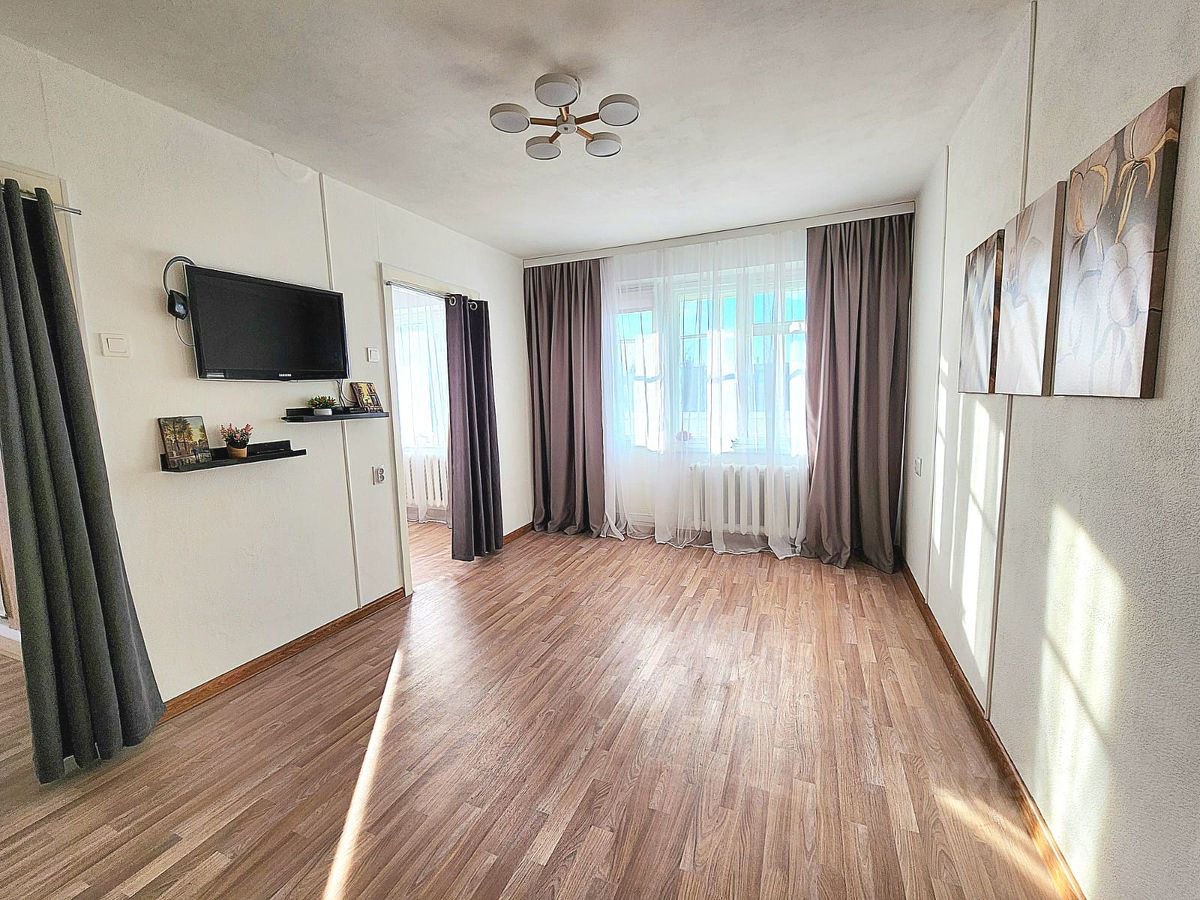 Квартира состоит из гостиной с местом под гардероб и выходом на балкон, а также двух отдельных комнат, позволяющих организовать приватное пространство для работы и отдыха. Оборудованная кухня и просторный совмещенный санузел с ванной создают дополнительное удобство для жизни.
