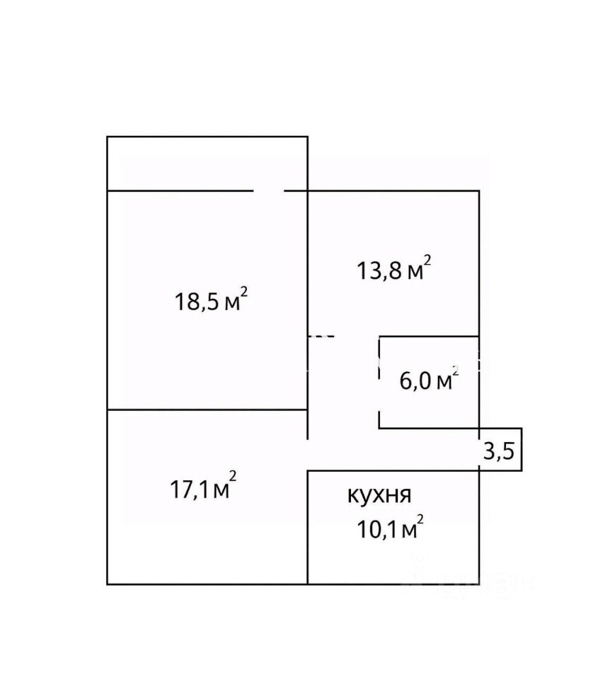 Три изолированные комнаты: 17,1м²; 18,5м²; 13,8м²; ПРАВИЛЬНОЙ формы для комфортного зонирования.