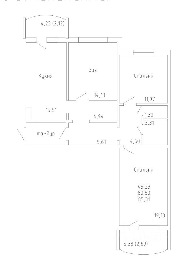 | Площадь общая | 80.5 |