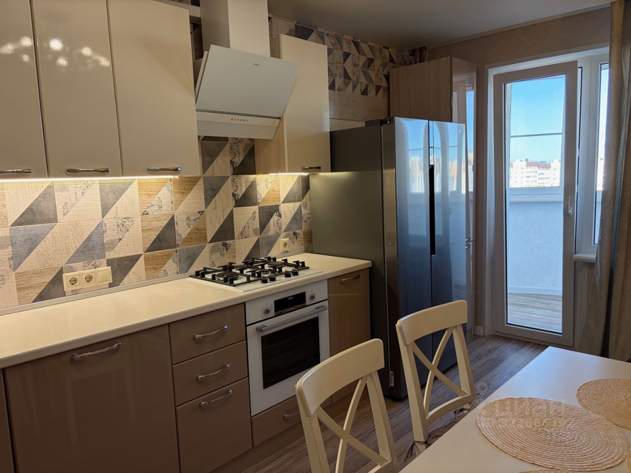газовая варочная панель, духовой шкаф электрический, стиральная машина.