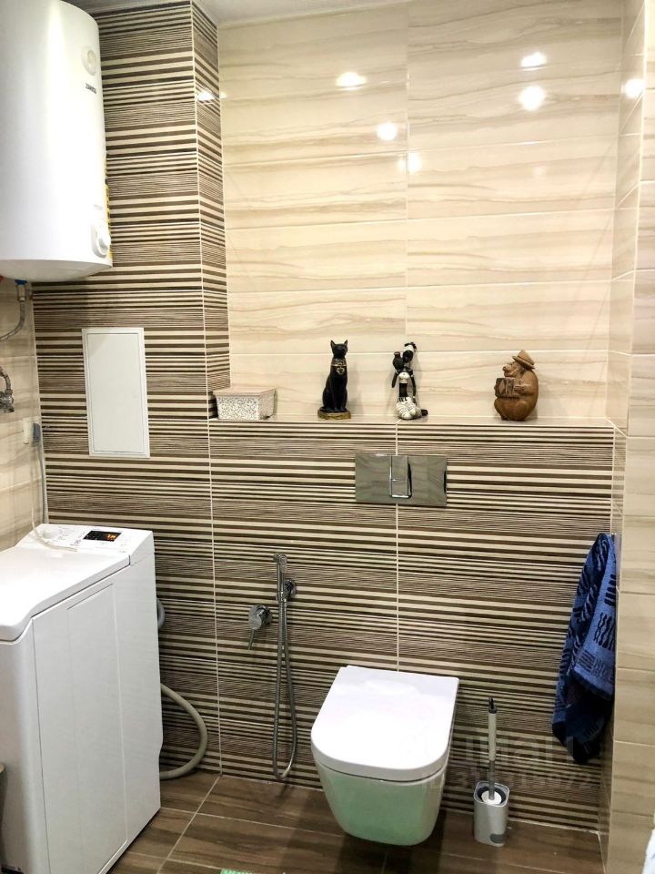 Санузел совмещенный, выполнен в современном стиле, установлен тёплый пол.