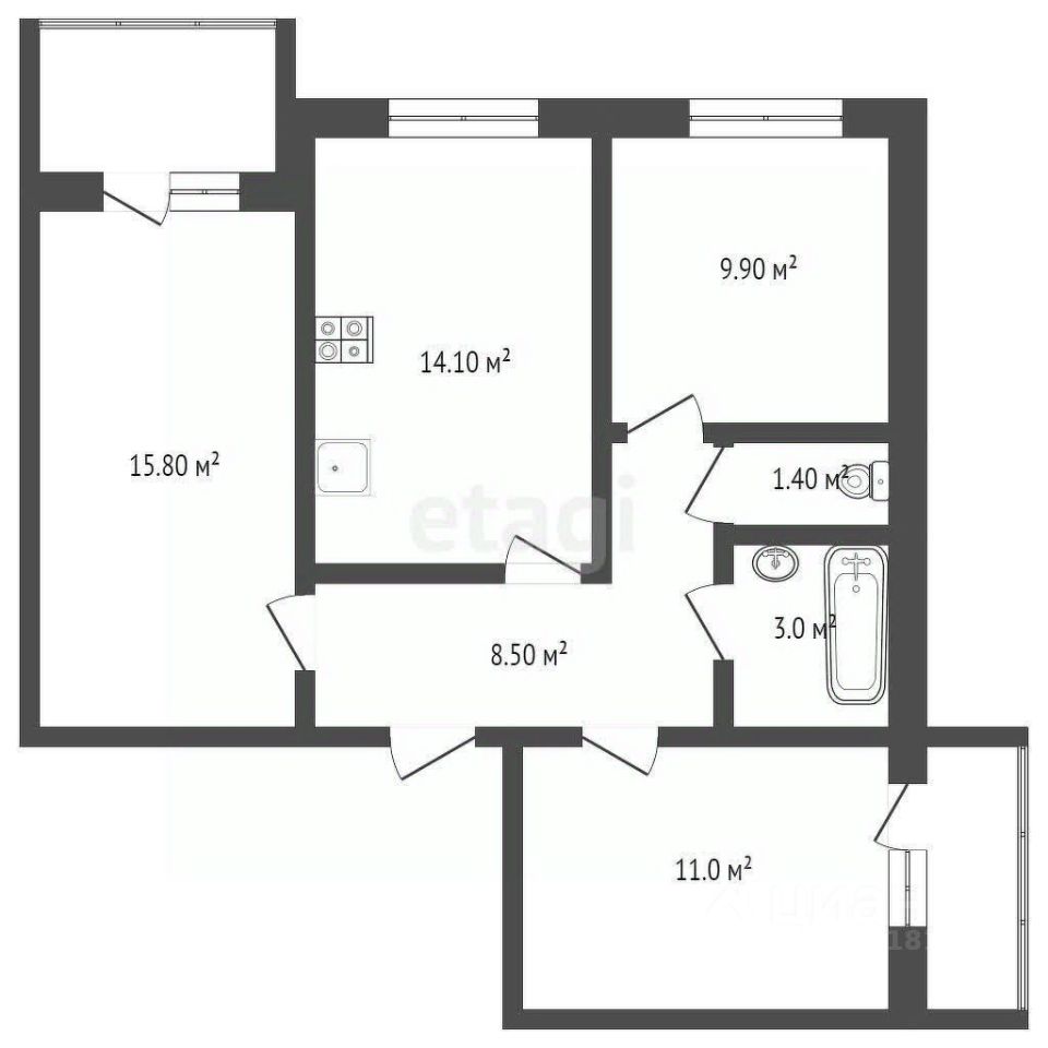 | Площадь кухни | 14.8 |