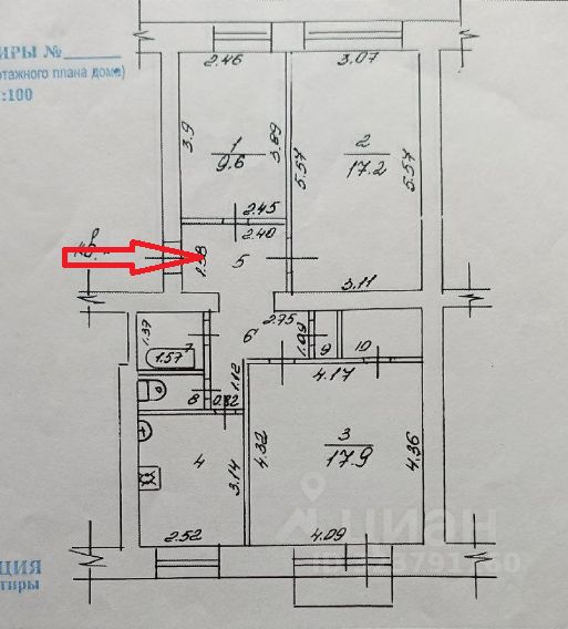 - комнаты 17,9 /17,2 / 9,6 м², кухня 8,0 м²;