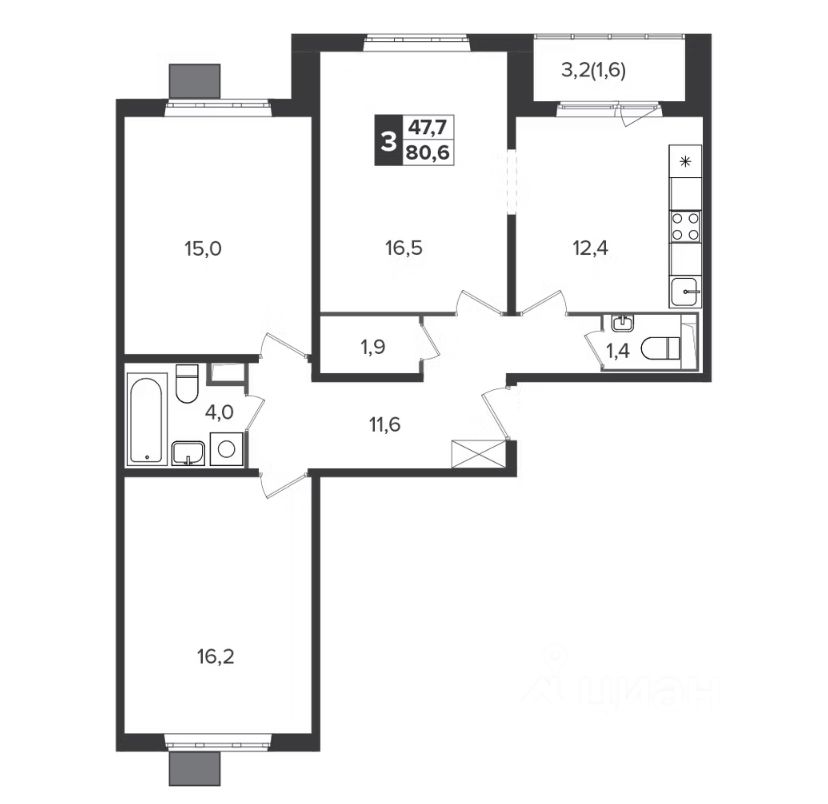 | Площадь кухни | 12.4 |