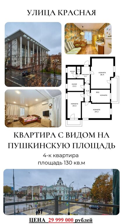 Продажа квартир / 4-комн., Краснодар, 29 900 000