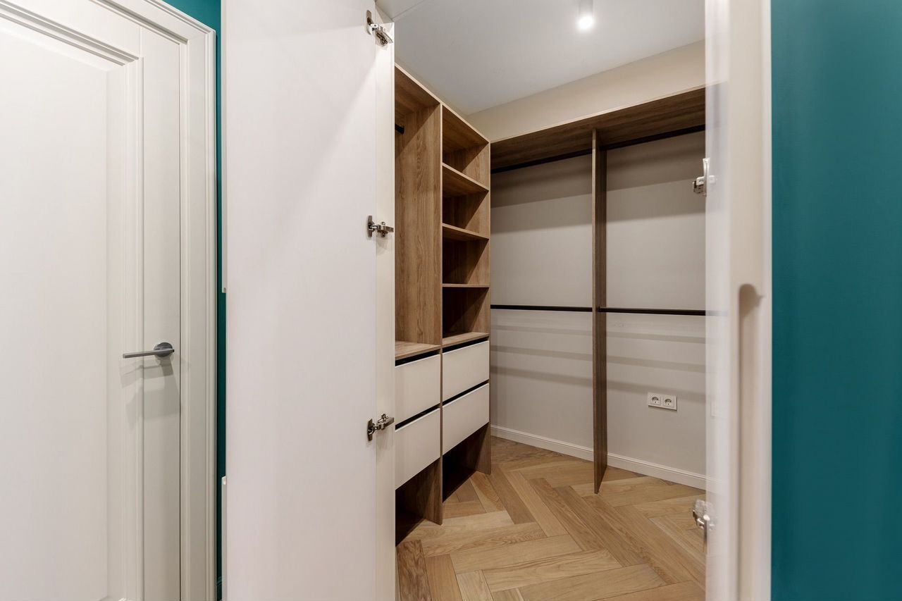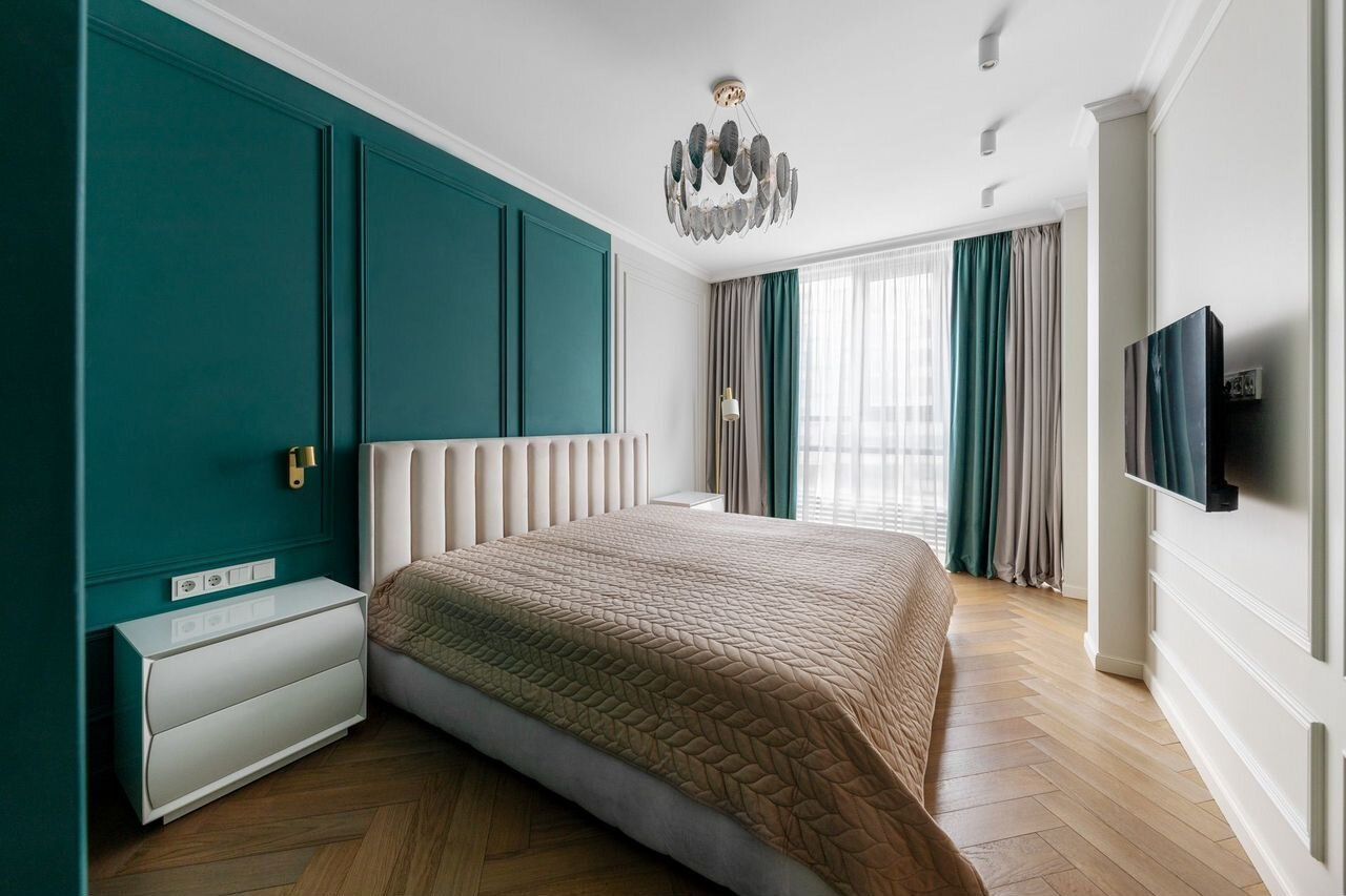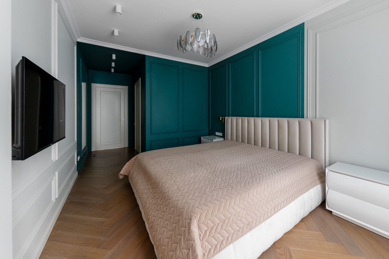 Квартира имеет спальню с отдельной встроенной гардеробной, две просторные комнаты, которые можно использовать как детские, кабинет, домашний спорт-зал, гостевую.