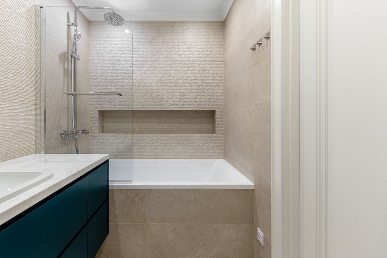 Кухня- гостиная с отдельной обеденной зоной, два санузла( один с ванной , второй с душевой ) и утепленная лоджия.