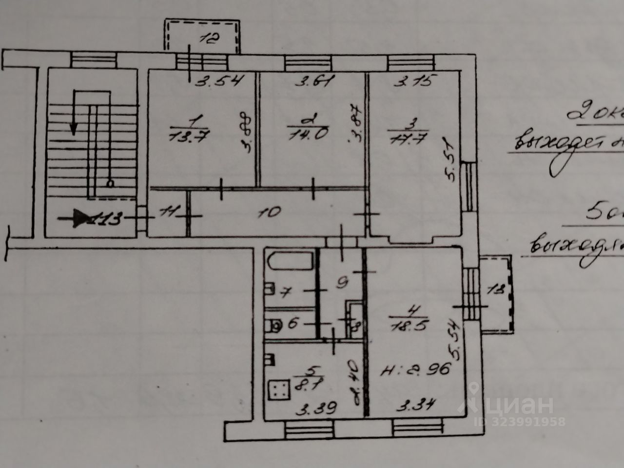 Комнаты -13,7 кв. м, 14,0 кв.м, 17,7 кв.м. и 18,5 кв. м. В трех комнатах имеются встроенные шкафы.