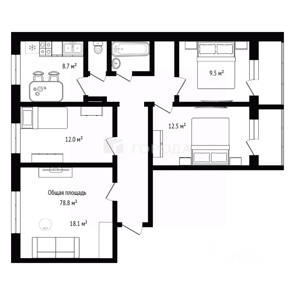 | Площадь общая | 78.8 |