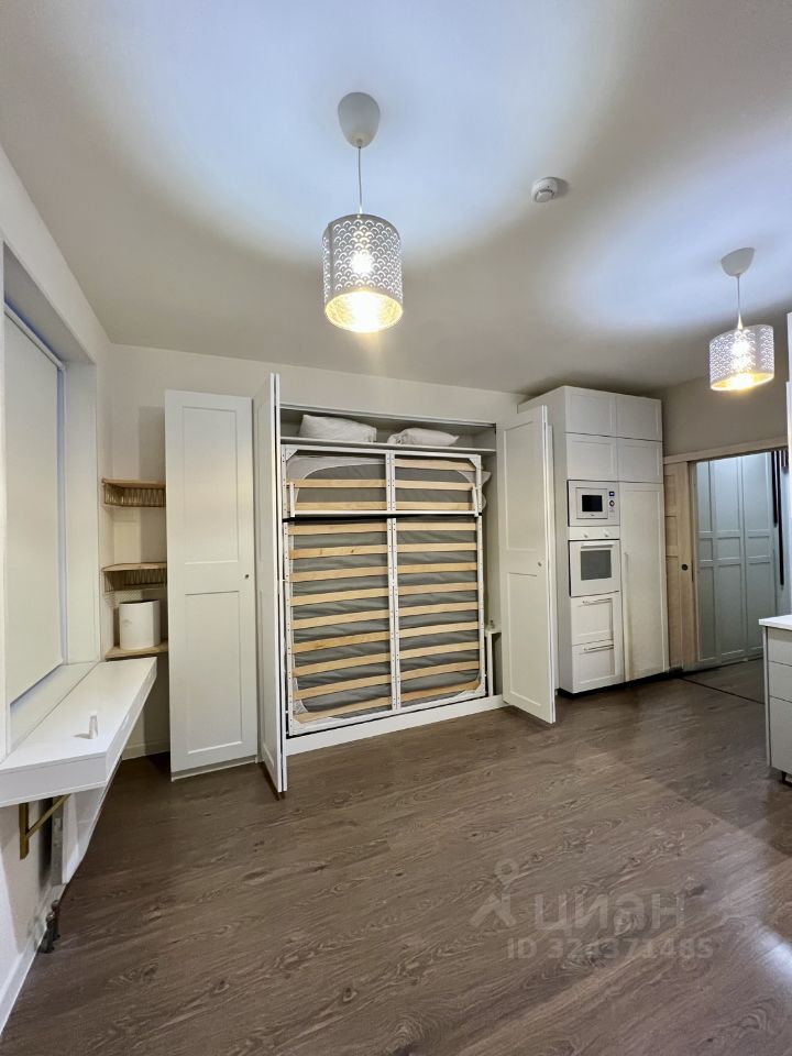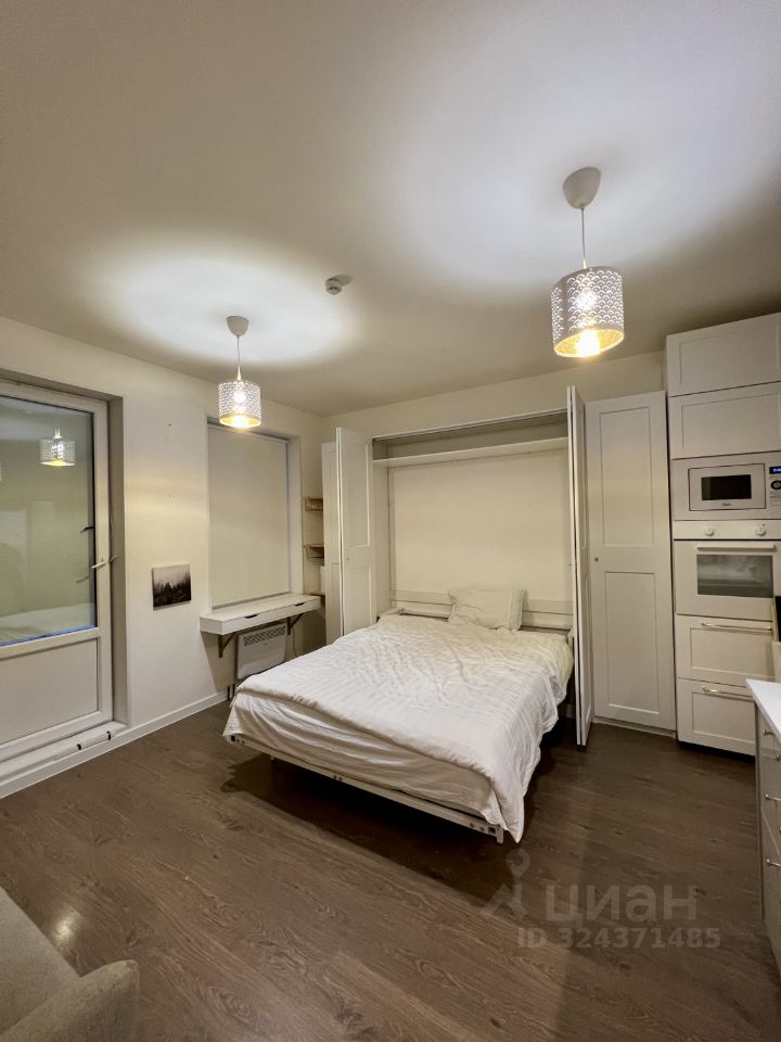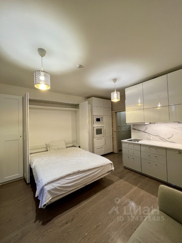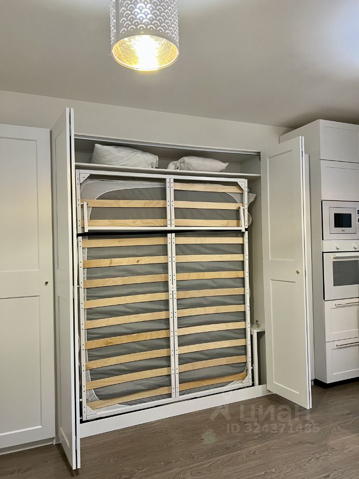 Стильная студия с фирменной фишкой: Умная подъемная кровать-трансформер. Экономит пространство и добавляет комфорт.